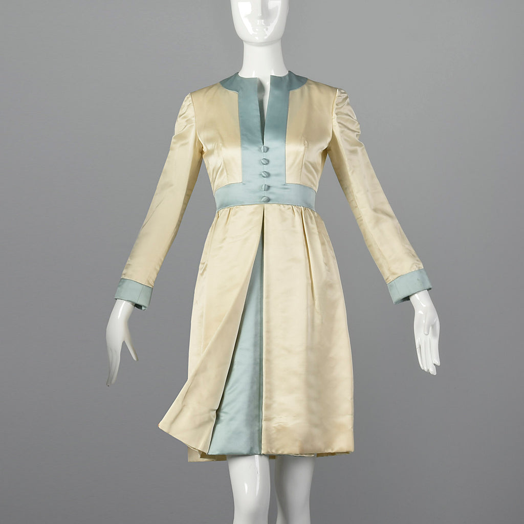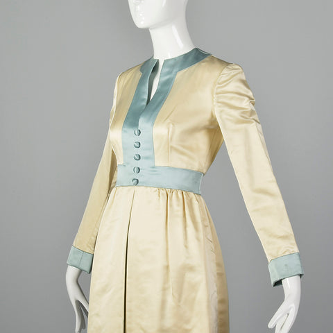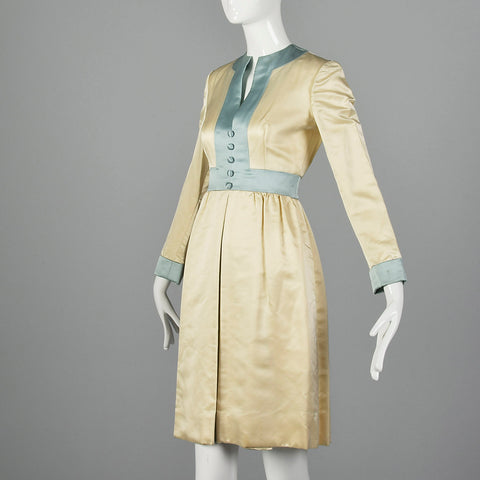 1960s Teal Traina Satin Dress
