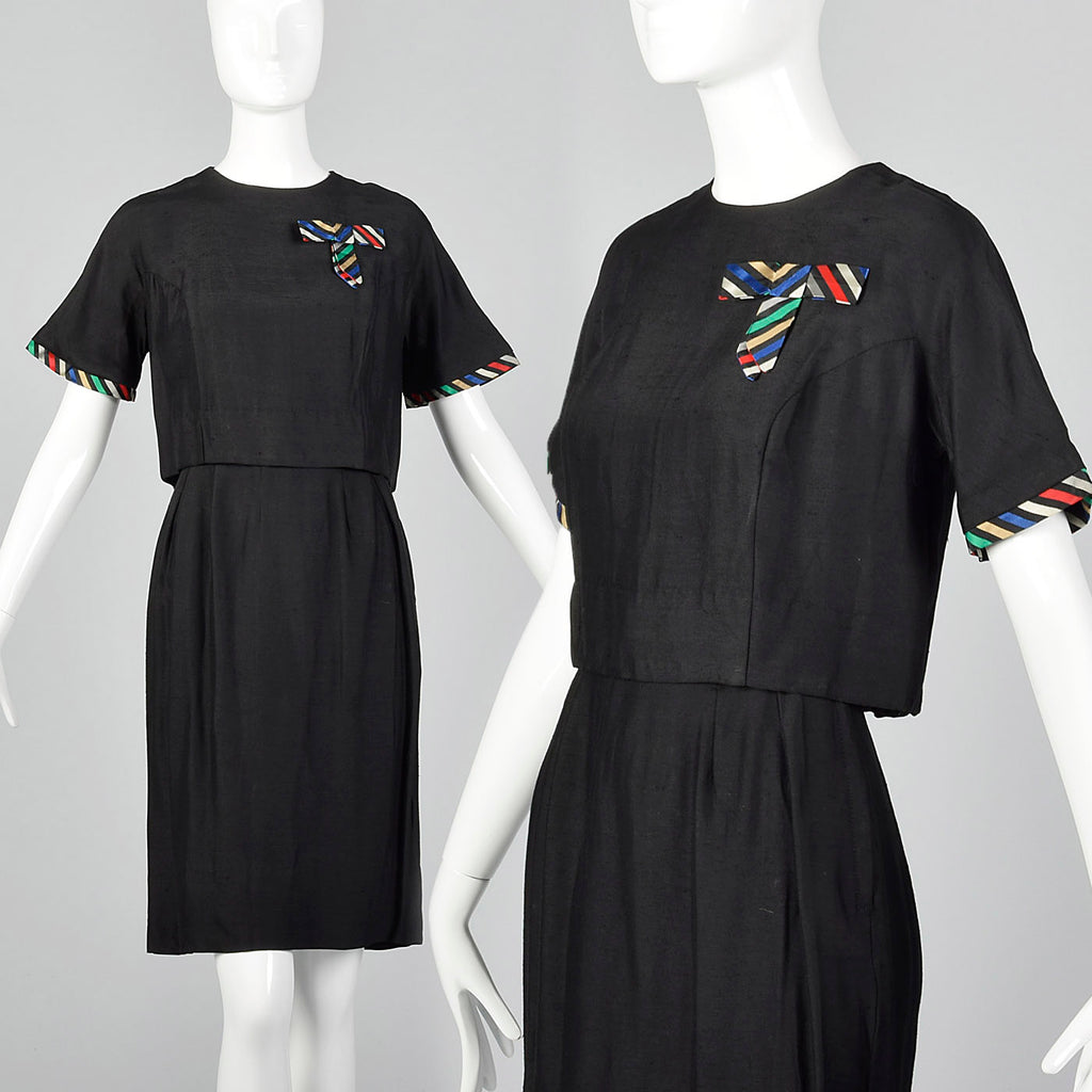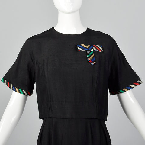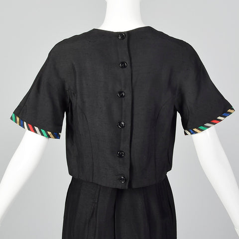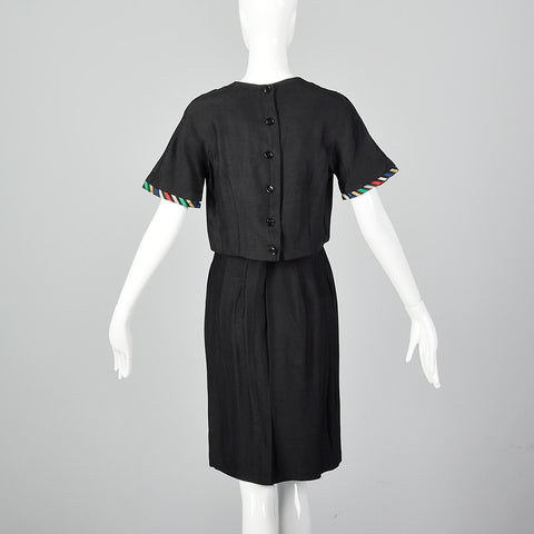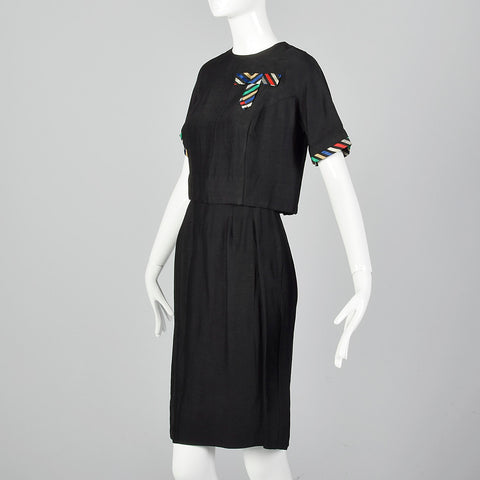 1960s Two Piece Skirt Suit with Ribbon Stripe Trim
