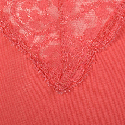The textile of this slip is 100% nylon in a bright pink and is lightweight. This slip has adjustable straps and lace detail at the bodice and hem. ...