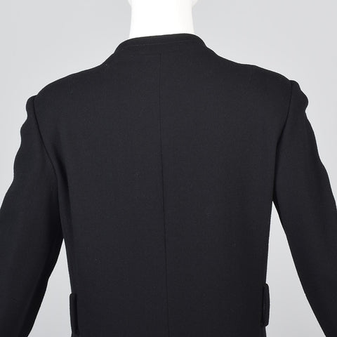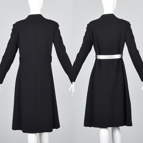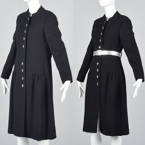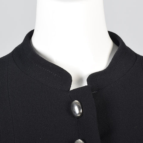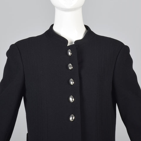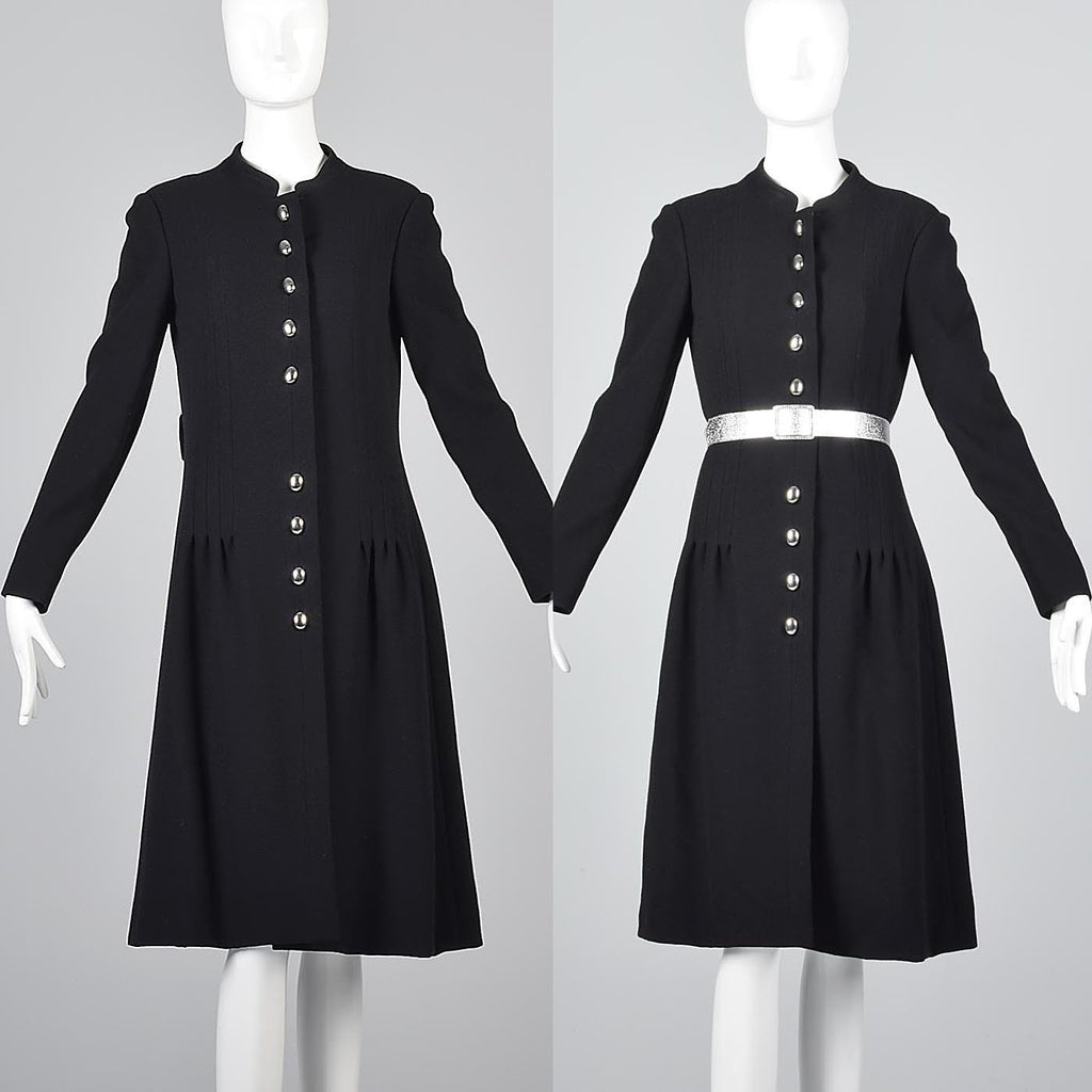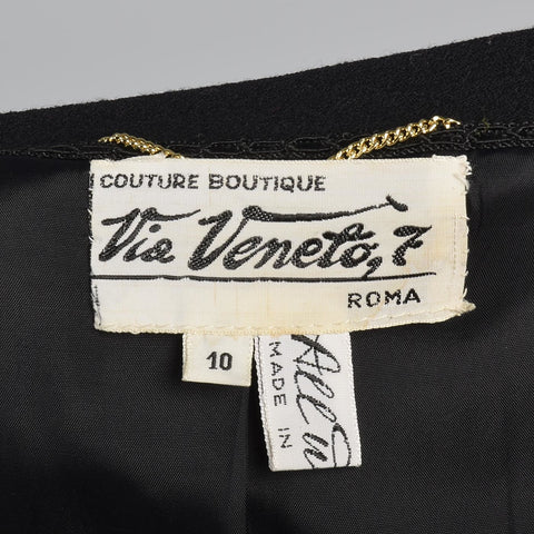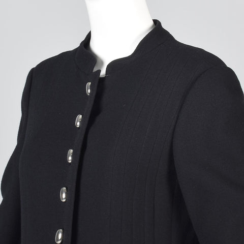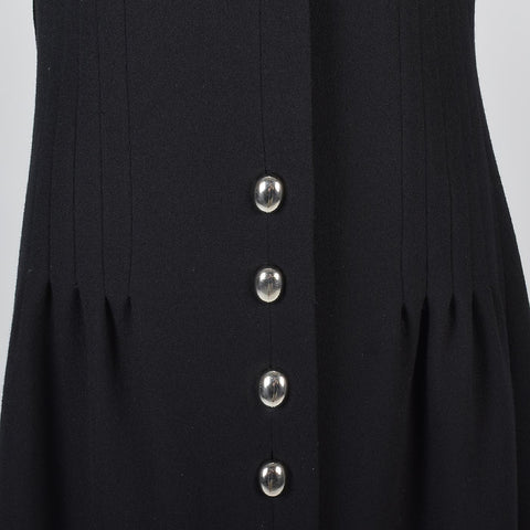 1960s Via Veneto Black Wool Coat with Silver Buttons