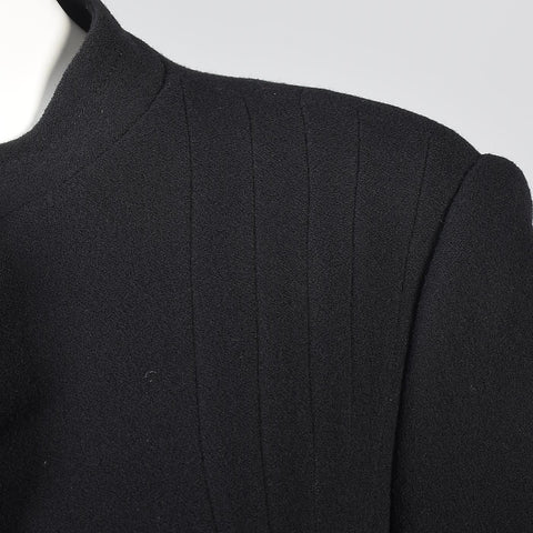 A lovely black wool dress coat. Medium weight is good for a light winter or spring/ & fall wear. Absolutely gorgeous construction and impeccabl...