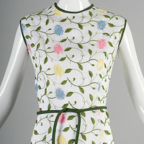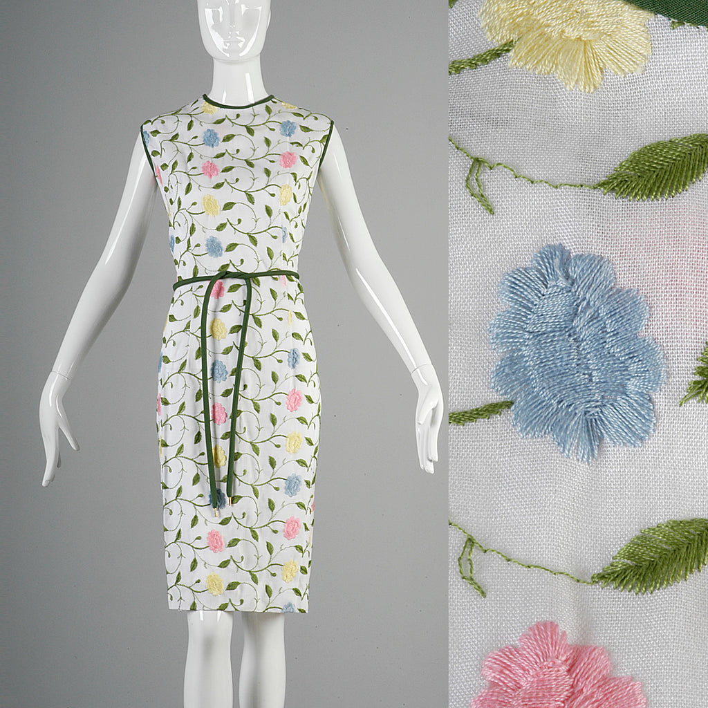 This 1960s dress has the best floral embroidery, perfect for your next spring or summer event! This is a white dress with floral embroidery all ove...