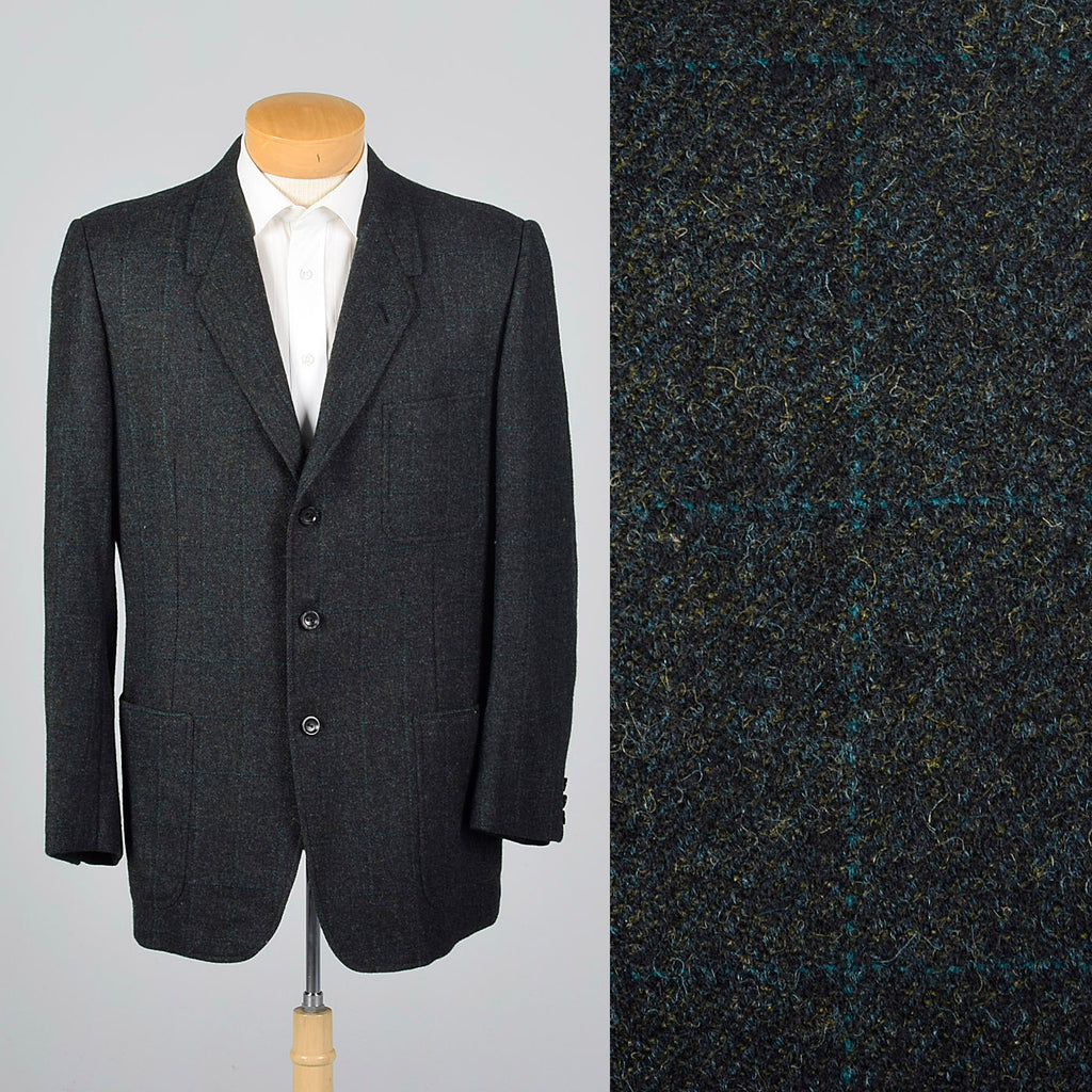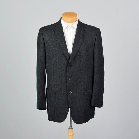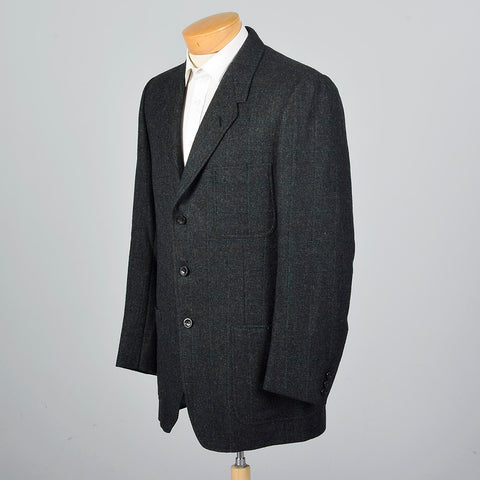 This listing is for one jacket. Textile is wool. Mens grey wool jacket. This garment has a half lining. Three button front closure, three front pat...