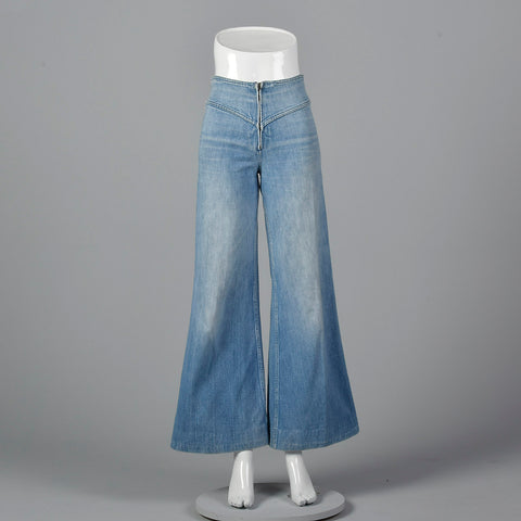 1970s Bell Bottom Cotton Denim Zip Front jeans