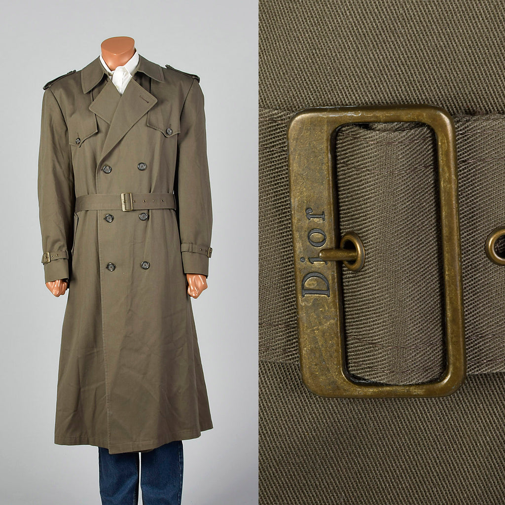 This listing is for one coat. Textile is a cotton poly blend. Christian Dior trench coat. Long dark grey coat with zip in tweed lining. Belt with l...