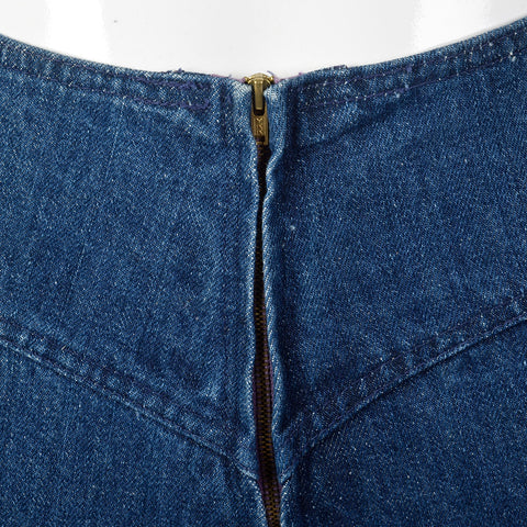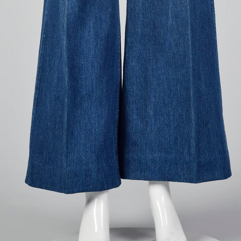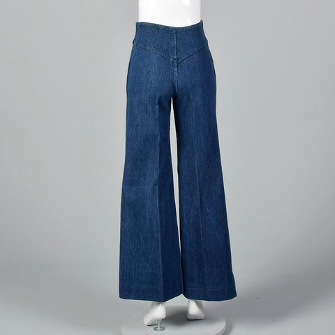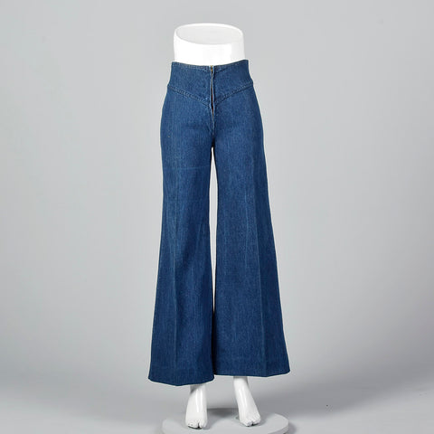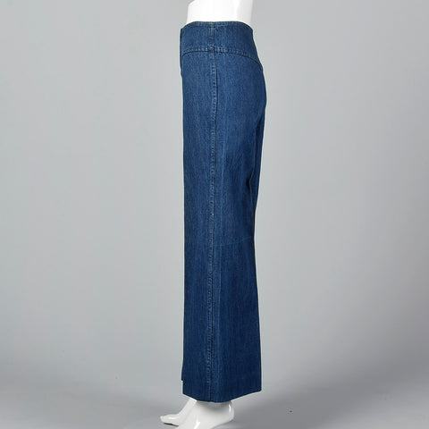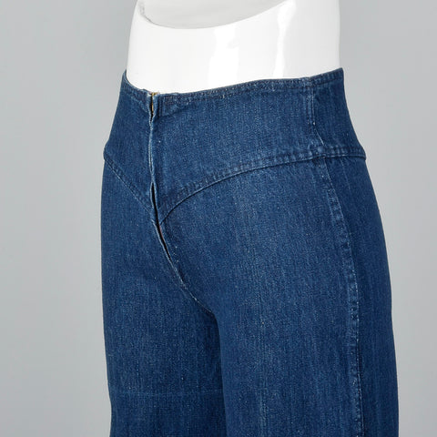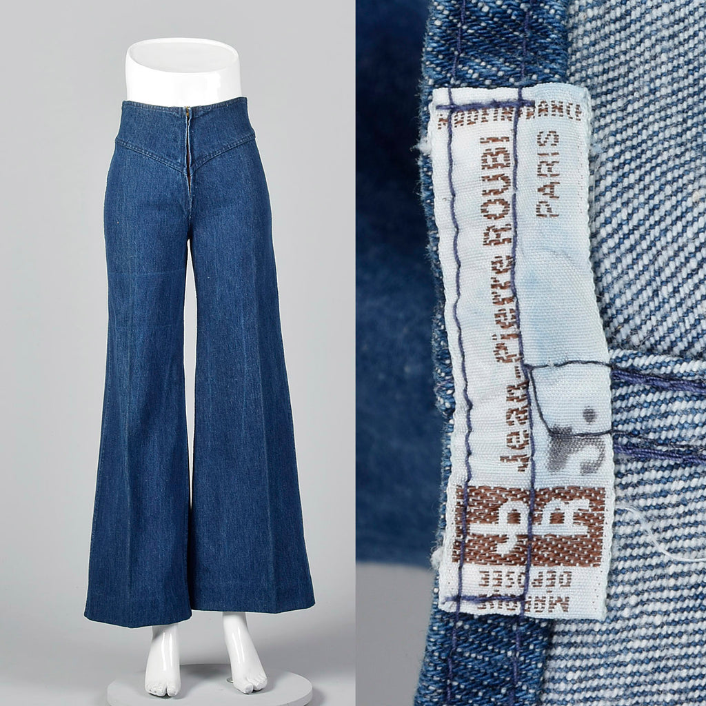 This listing is for one pair of pants. Textile is cotton denim. Bell bottoms with zip front. Made in France. Pants have been taken up at the hem an...