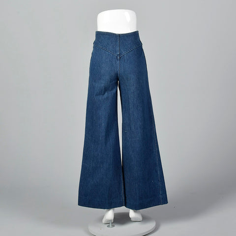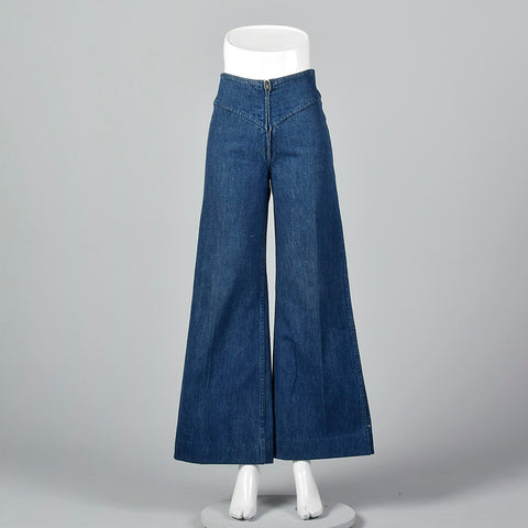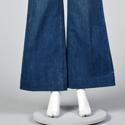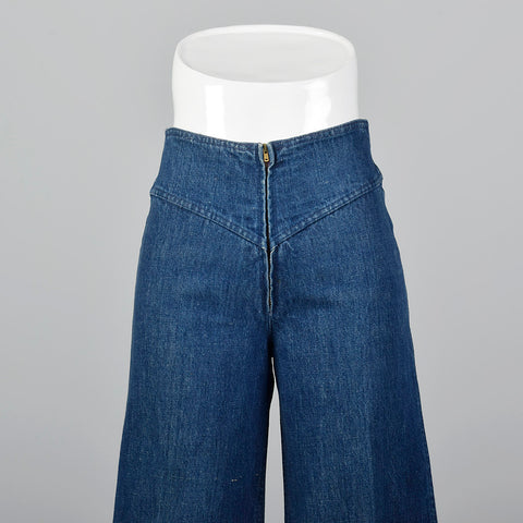 1970s Cotton Denim Zip Front Bell Bottom Jeans