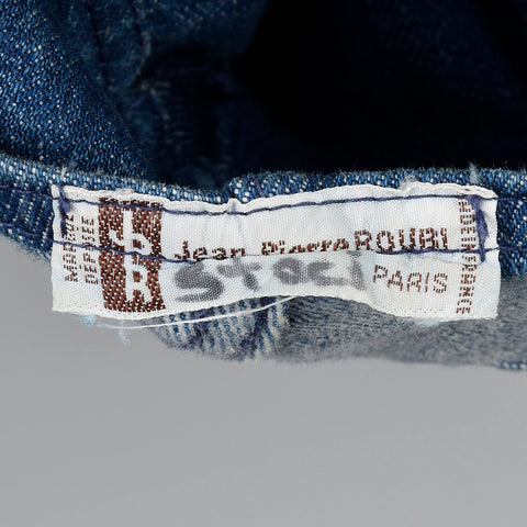 This listing is for pair of pants. Textile is cotton denim. Bell bottoms with zip front. Made in France. Hem has been taken up and has been zigzag ...