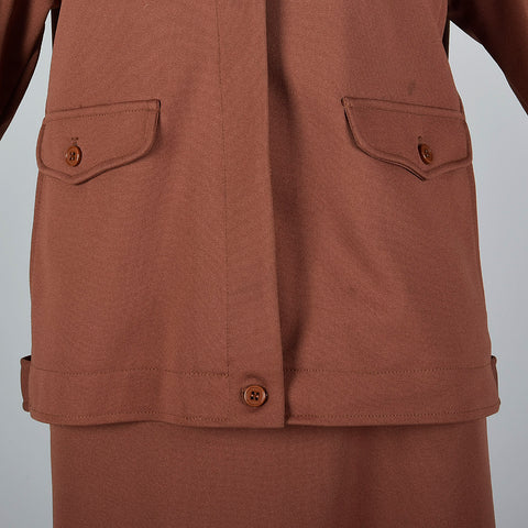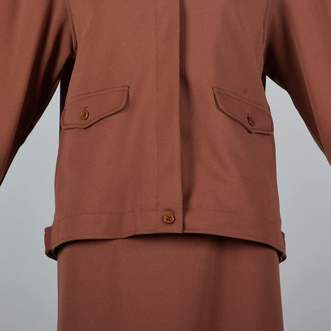 This set includes one jacket and one skirt. The textile is 85% polyester, 15% nylon in brown and is lightweight. The jacket is unlined with long sl...