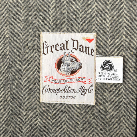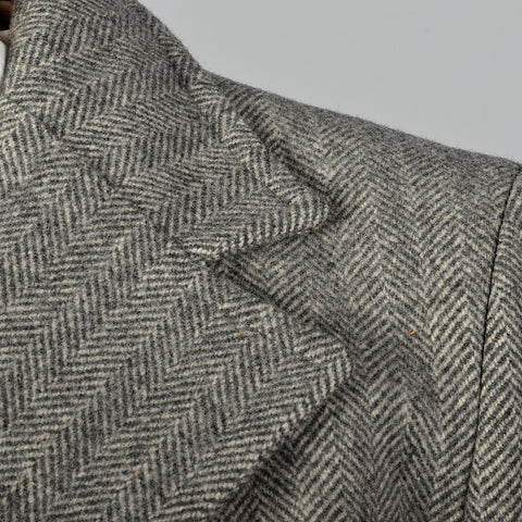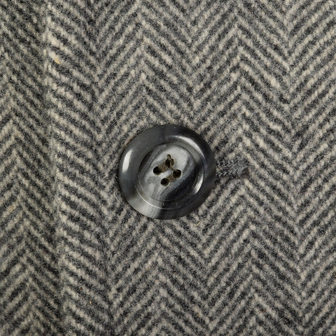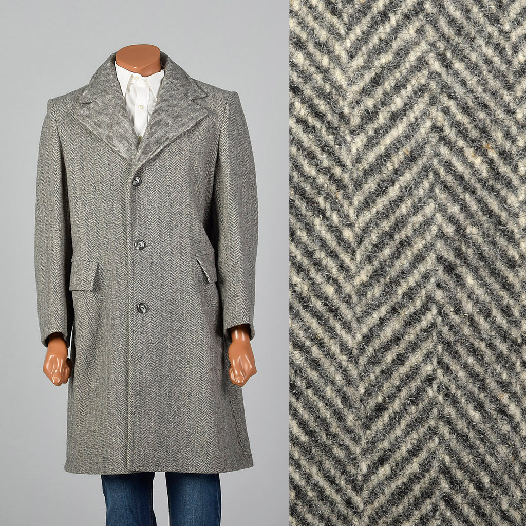 This listing is for one coat. Textile is a wool nylon blend. Wool tweed overcoat. Grey herringbone long wool coat lined in black. Three front butto...