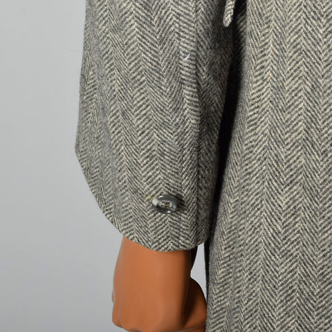 1970s Gray Wool Tweed Coat with Convertible Pockets