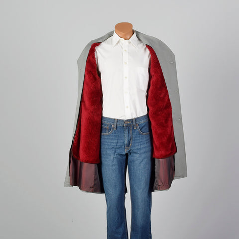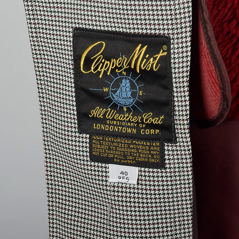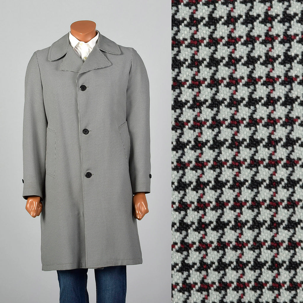 This listing is for one coat. Textile is polyester. Houndstooth overcoat. Grey, black, and subtle red houndstooth. Plush red removable liner, two l...