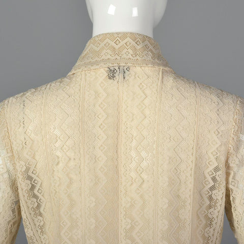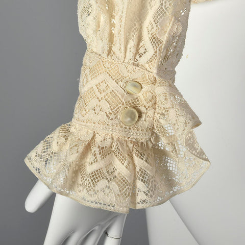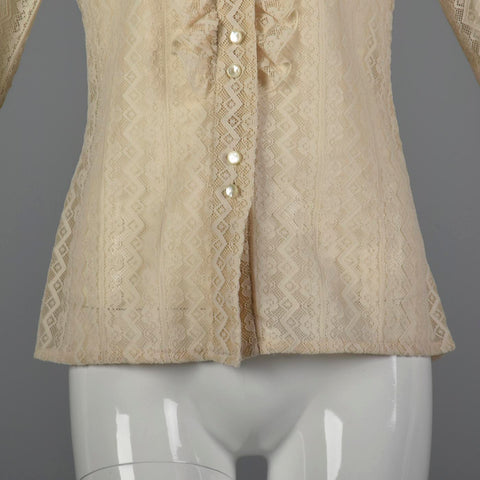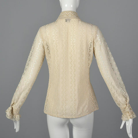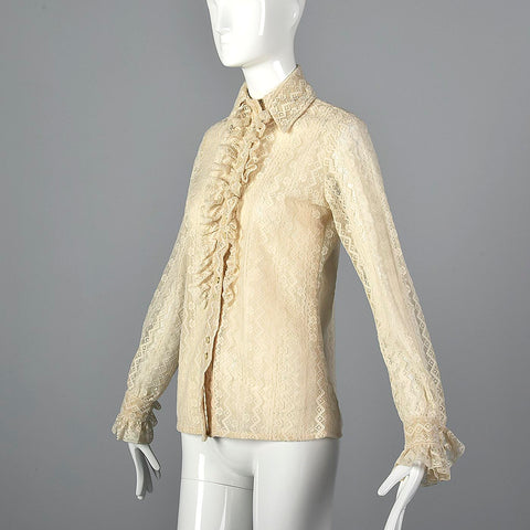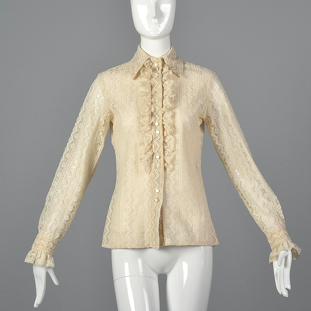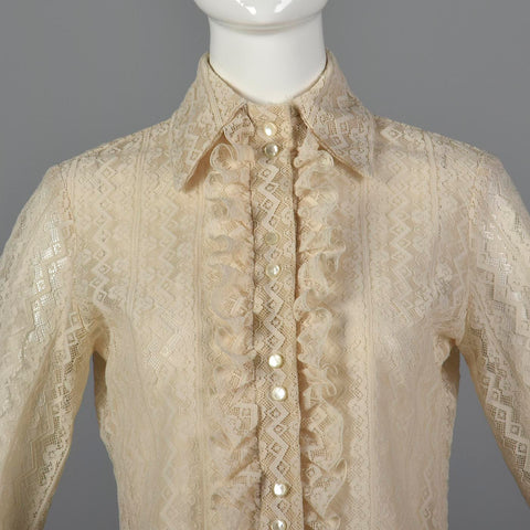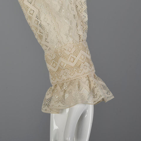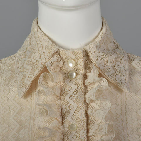 1970s Lace Blouse with Tuxedo Ruffle Front