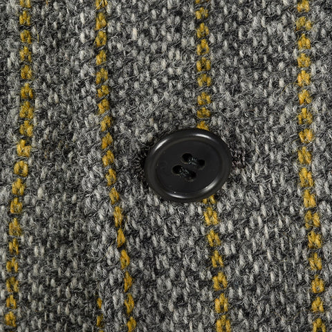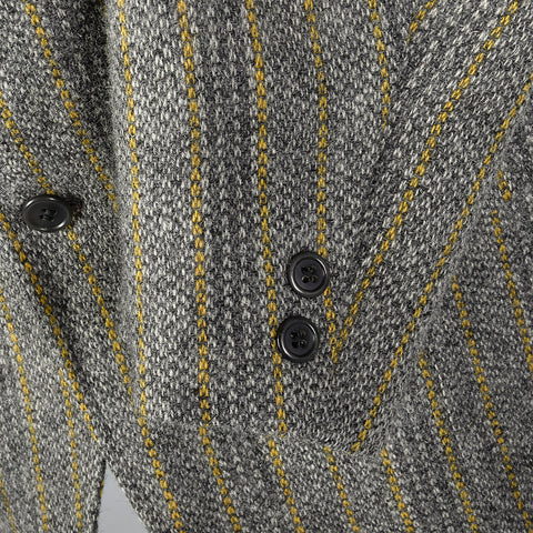 The textile of this jacket is unmarked, gray tweed with a yellow stripe, and this jacket is partially lined. The front has a two button closure, wi...