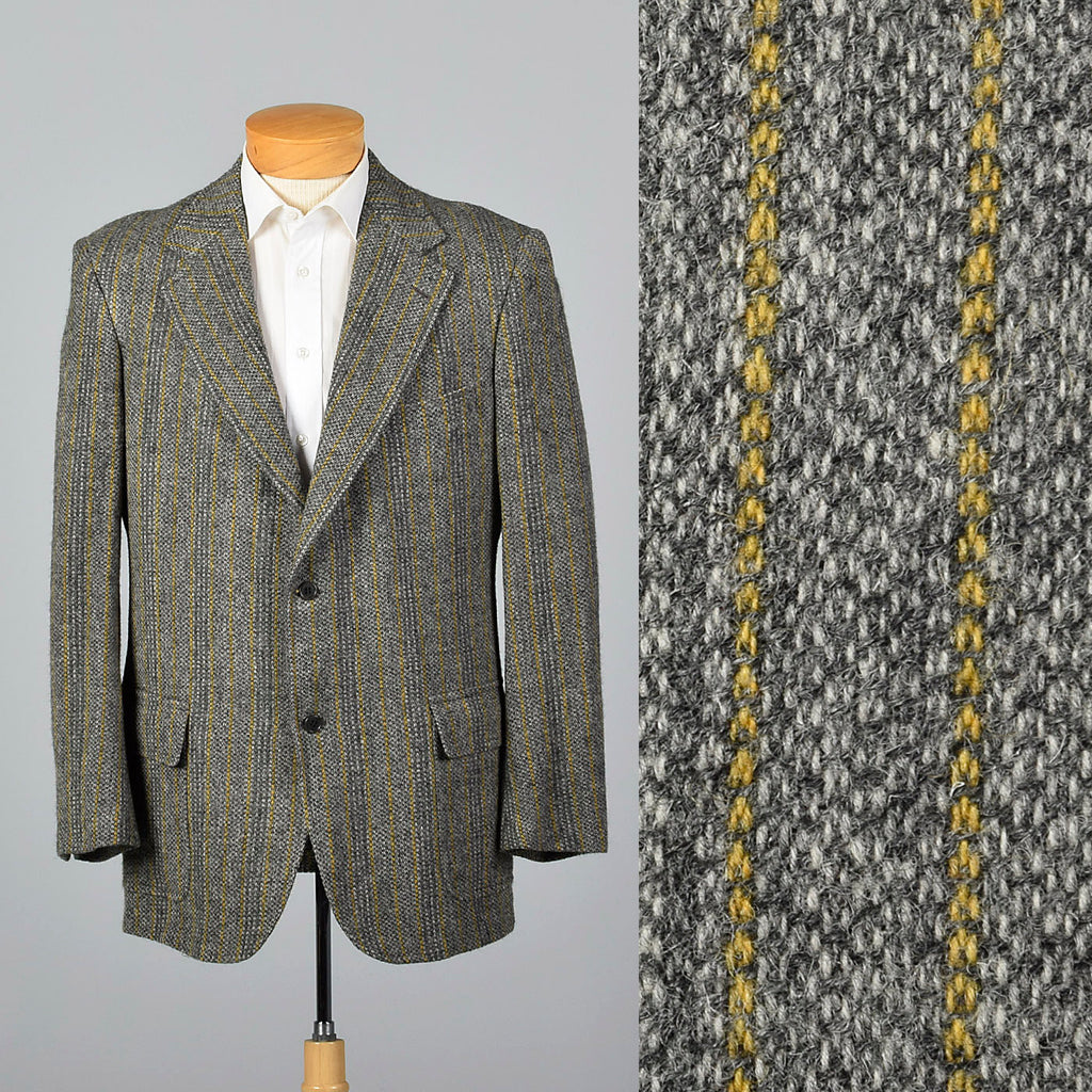 1970s Mens Brooks Brothers Bespoke Gray Tweed Jacket