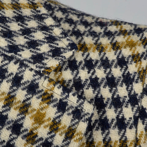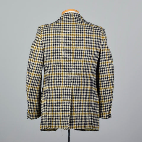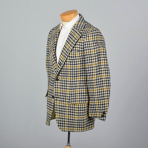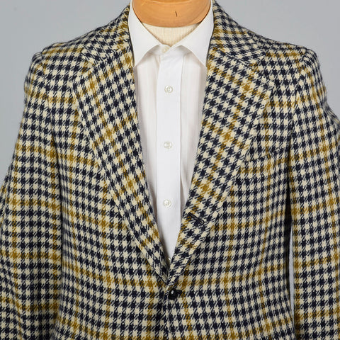 This 1970s mens blazer has excellent pattern matching. The textile is unmarked, wool tweed, in a houndstooth plaid. This blazer has wide lapels, a ...