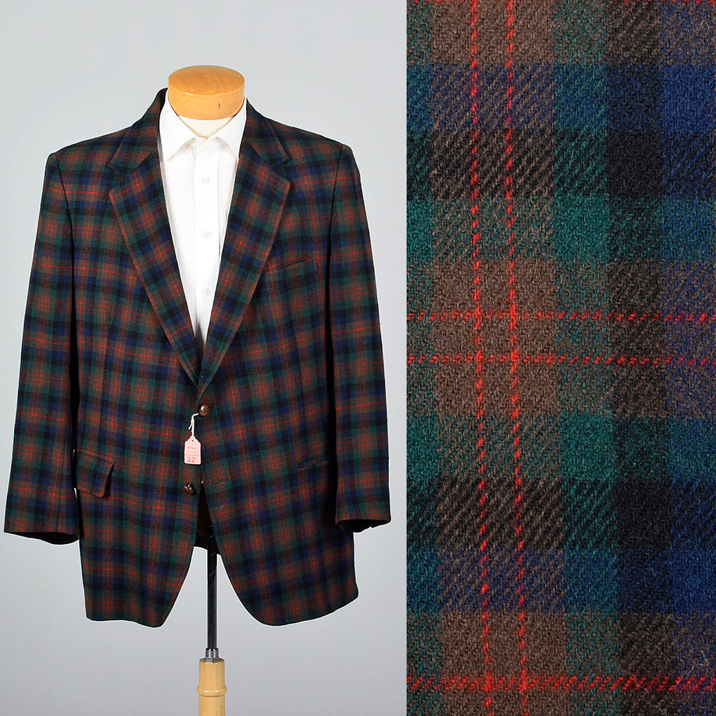 This listing is for one jacket. Textile is wool. Tartan plaid wool jacket. Brown, blue, green, black, and red stripes. Half lined in brown. Two but...