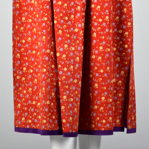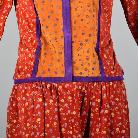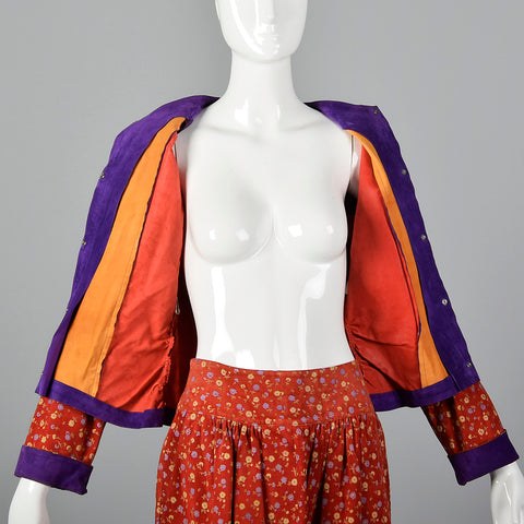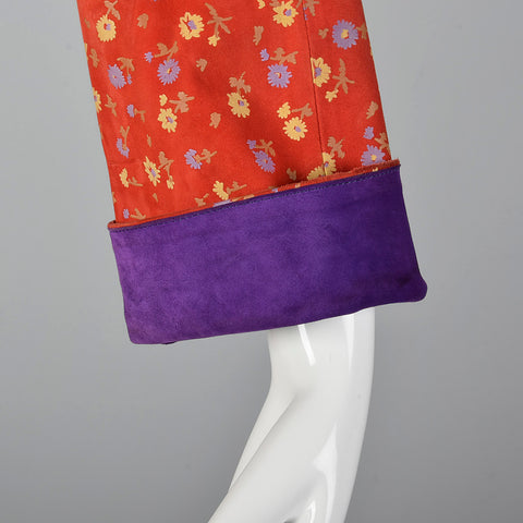 1970s Mario Valentino Suede Leather Two Piece Set with Silk Screen Floral Print