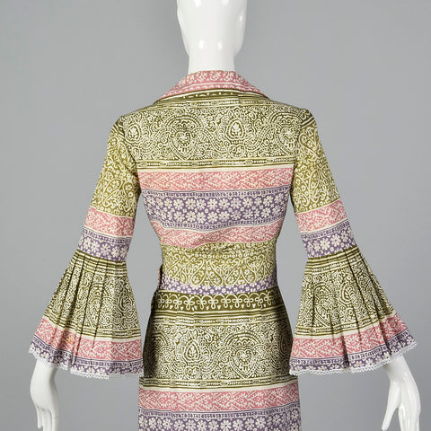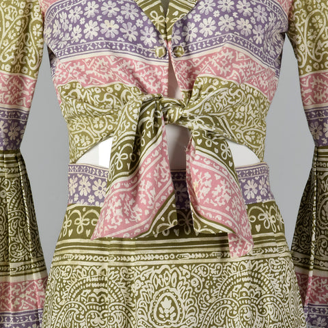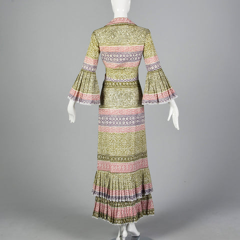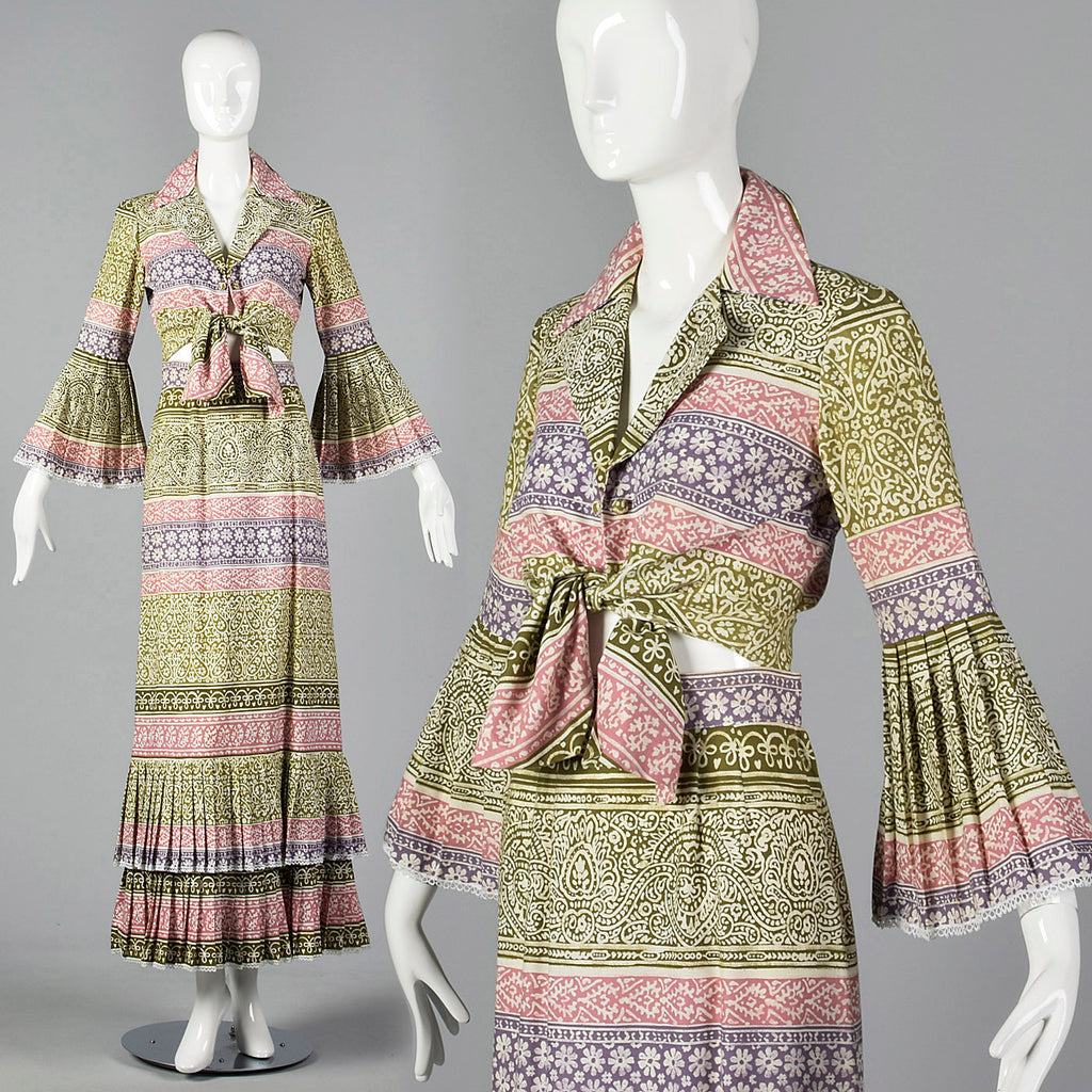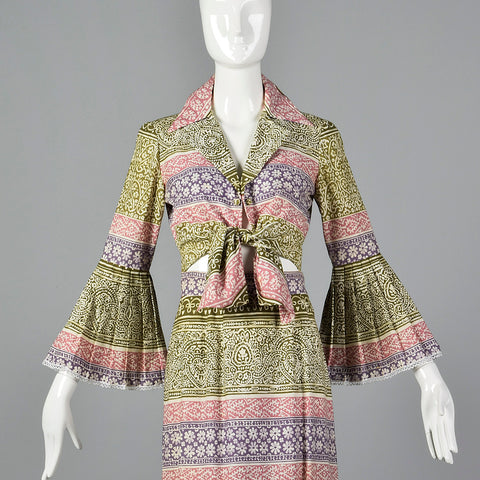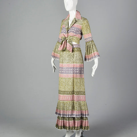 1970s Victor Costa I. Magnin Tie Waist Crop Top and Maxi Skirt