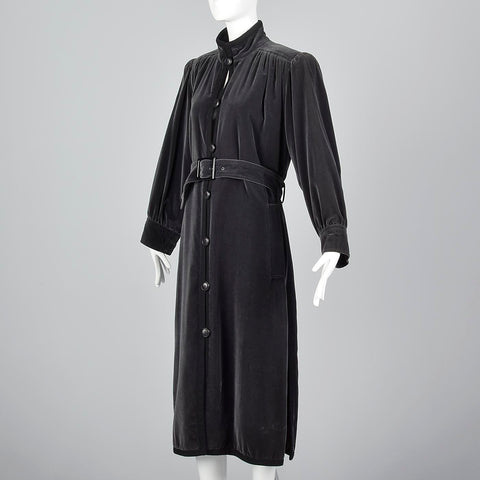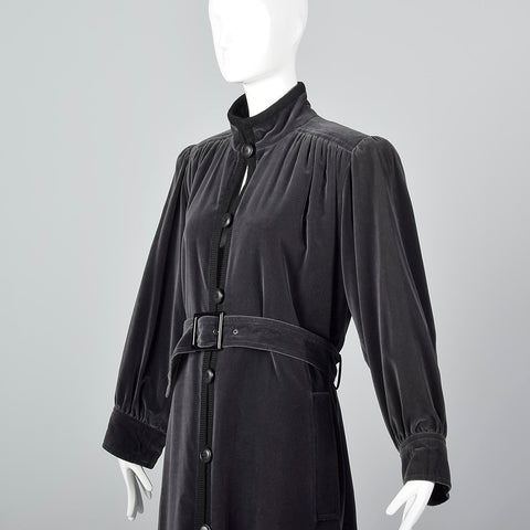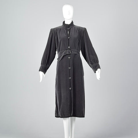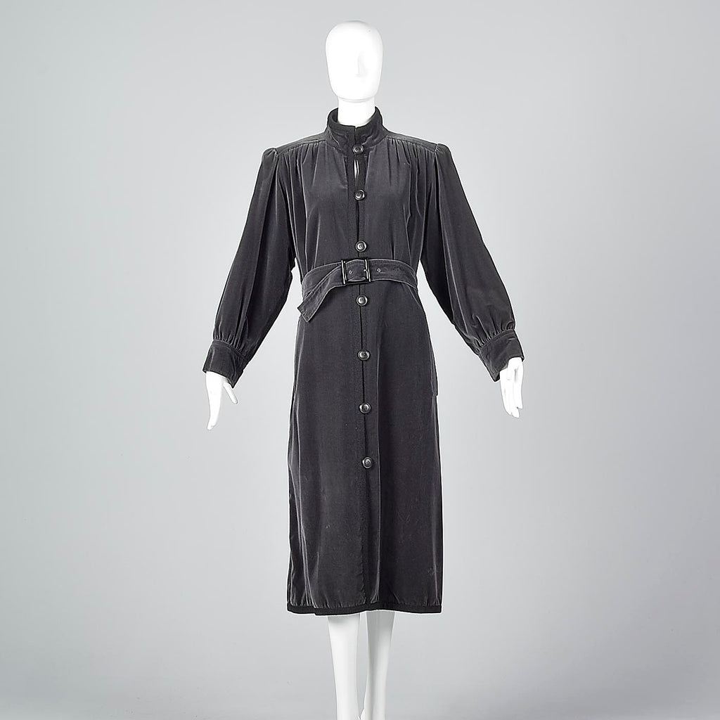 1976 Yves Saint Laurent Russian Collection Gray Velvet Trench Coat