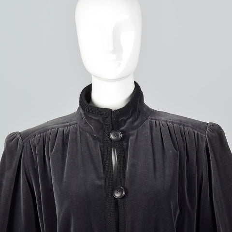 A beautiful coat from the Yves Saint Laurent Rive Gauche Russian Collection! Textile is unmarked, gray velvet, with black braid trim. Loose fitting...