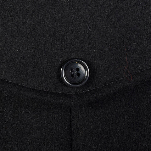 The textile of this coat is 100% wool in black and is heavy enough for winter wear. This coat has long sleeves, a button front, two front pockets, ...