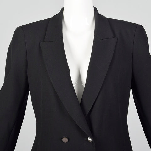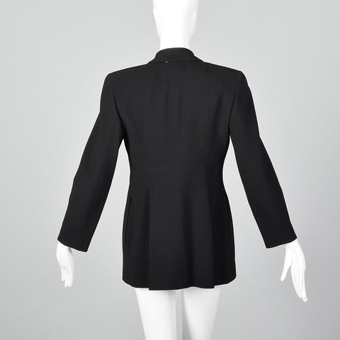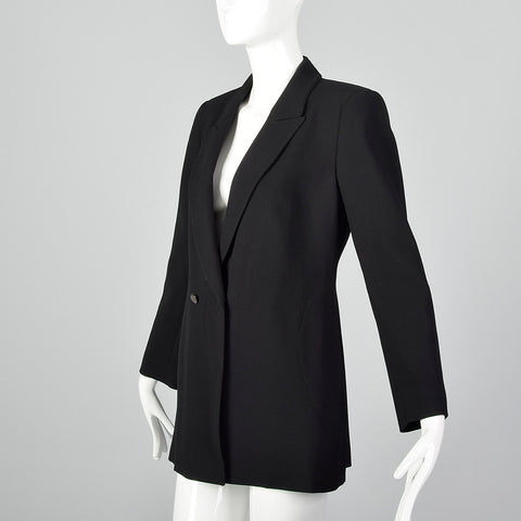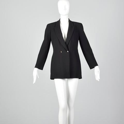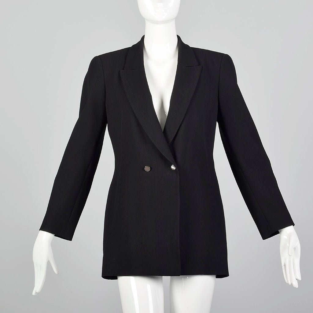 This listing is for one blazer. Textile is unmarked. Claude Montana blazer. Black, long sleeve, with two pockets. Two buttons, one decorative, one ...