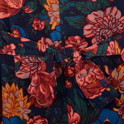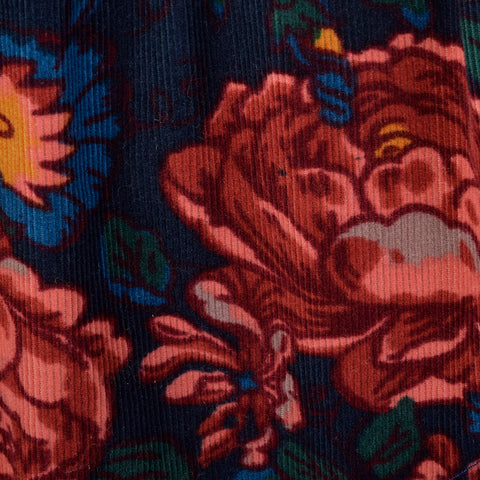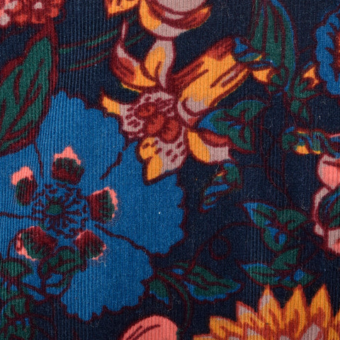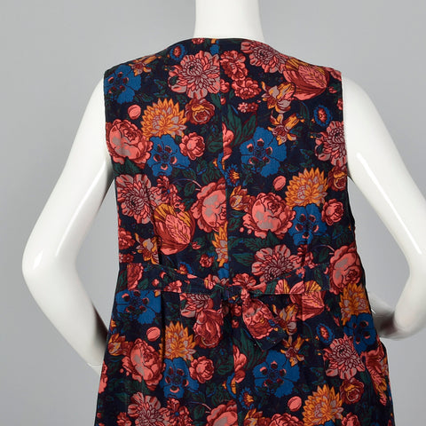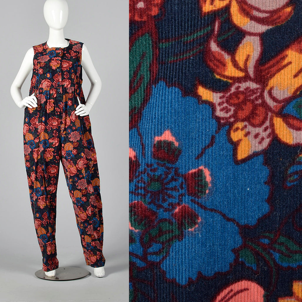 The textile of this jumpsuit is 100% cotton in a floral print. This jumpsuit has a button front, a tie back waist, two large pockets, and ankle len...