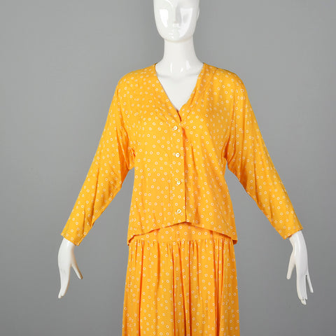 This set includes one top and one skirt. The textile is 100% viscose in bright yellow and lightweight. The top has long sleeves and a button front,...