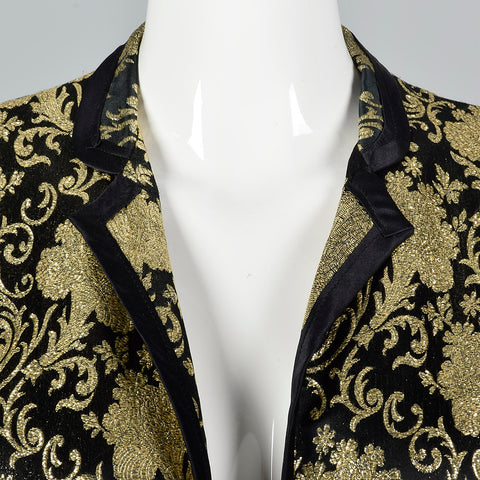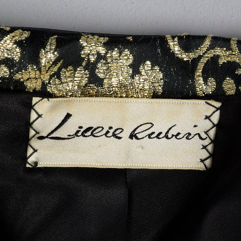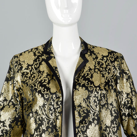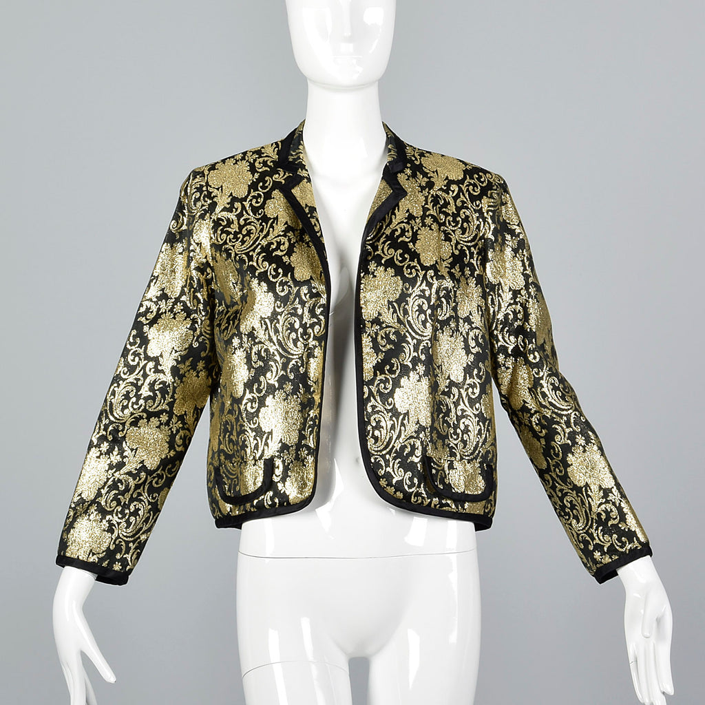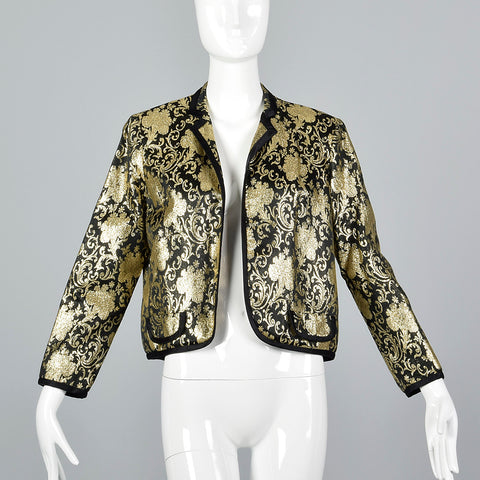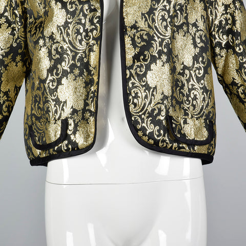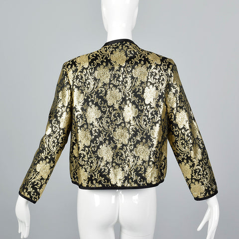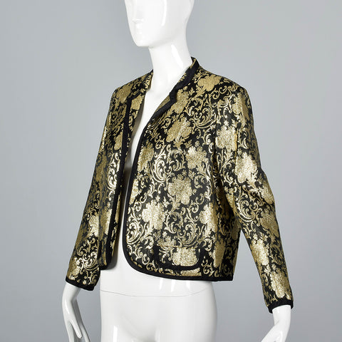 1980s Lillie Rubin Black and Metallic Gold Brocade Bolero Jacket