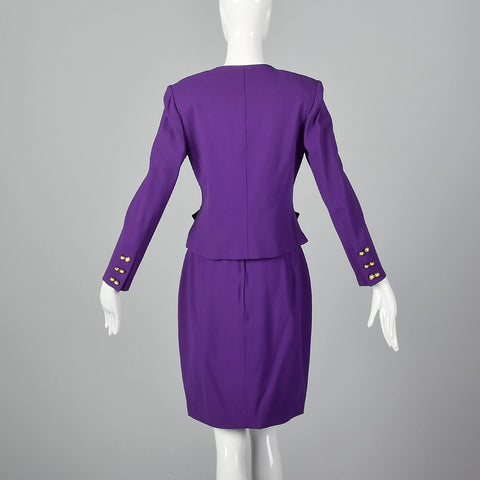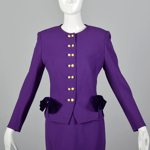 This listing is for one skirt suit consisting of one jacket and one skirt. Textile is wool. Louis Feraud skirt suit. Purple set with Louis Feraud l...