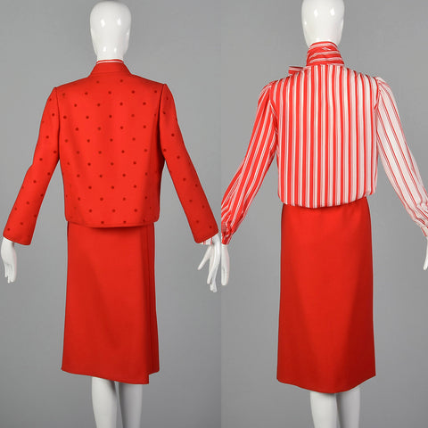 This set includes one jacket, one blouse, and one skirt. The textile of the jacket and skirt is wool, and the textile of the blouse is unmarked in ...