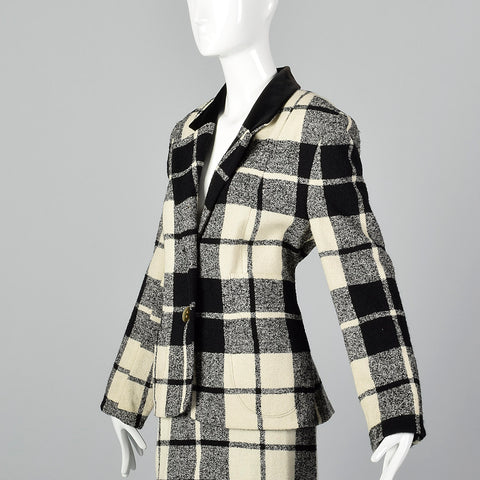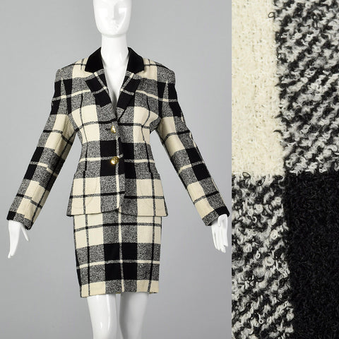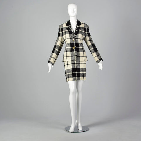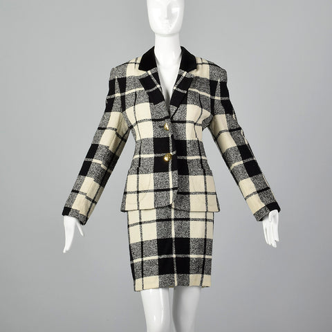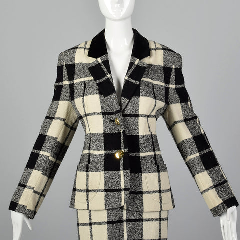 1980s Louis Feraud Wool Plaid Skirt Suit
