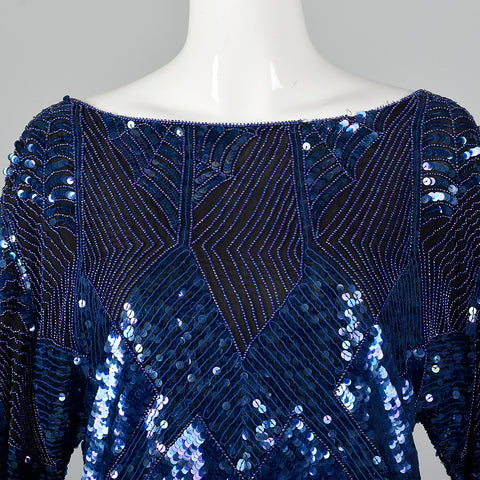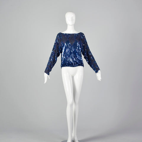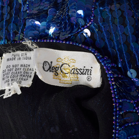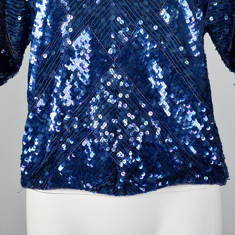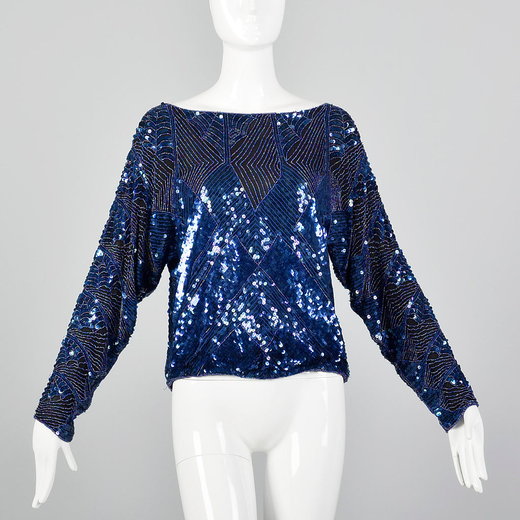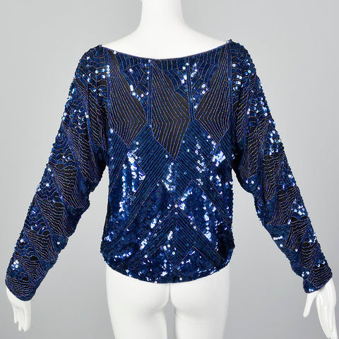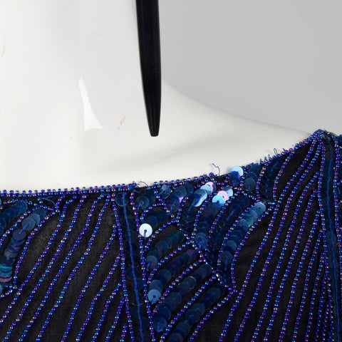 1980s Oleg Cassini Blue Beaded Top