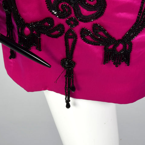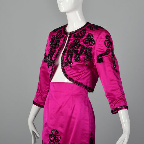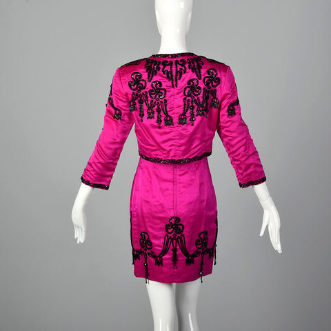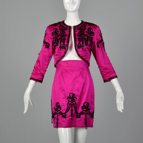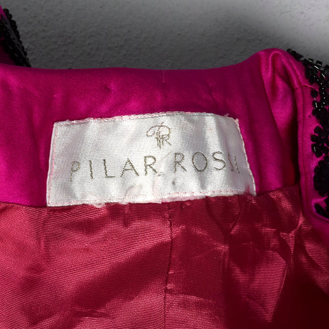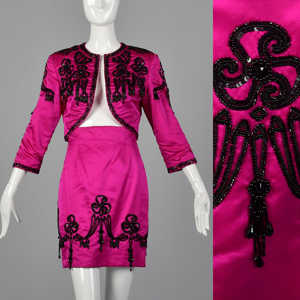 This listing is for one skirt suit consisting of one skirt and one jacket. Pilar Rossi hot pink skirt suit. Matador style suit with black beading. ...