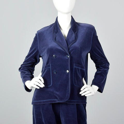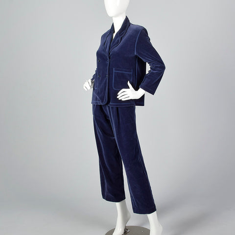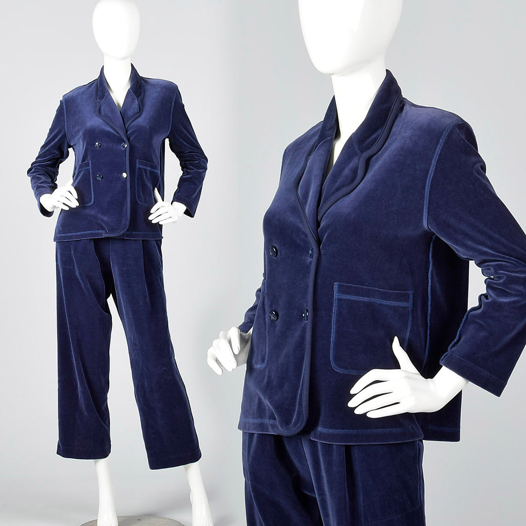 This Sonia Rykiel set is perfect for relaxing in style! This set includes one top and one pair of pants. The textile is unmarked, blue velour, and ...