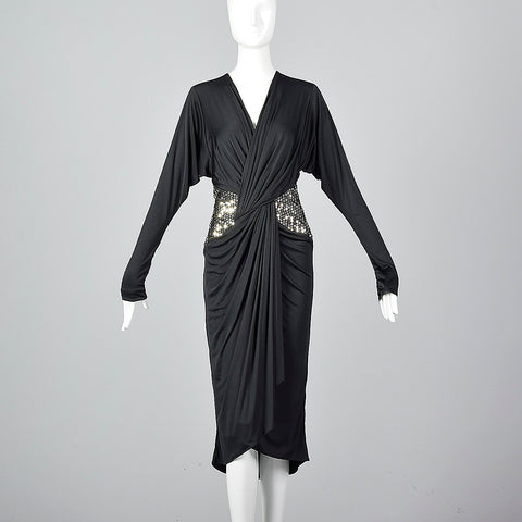 1980s Tadashi I. Magnin Sequin and Draped Dress