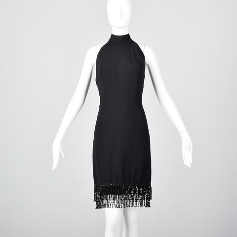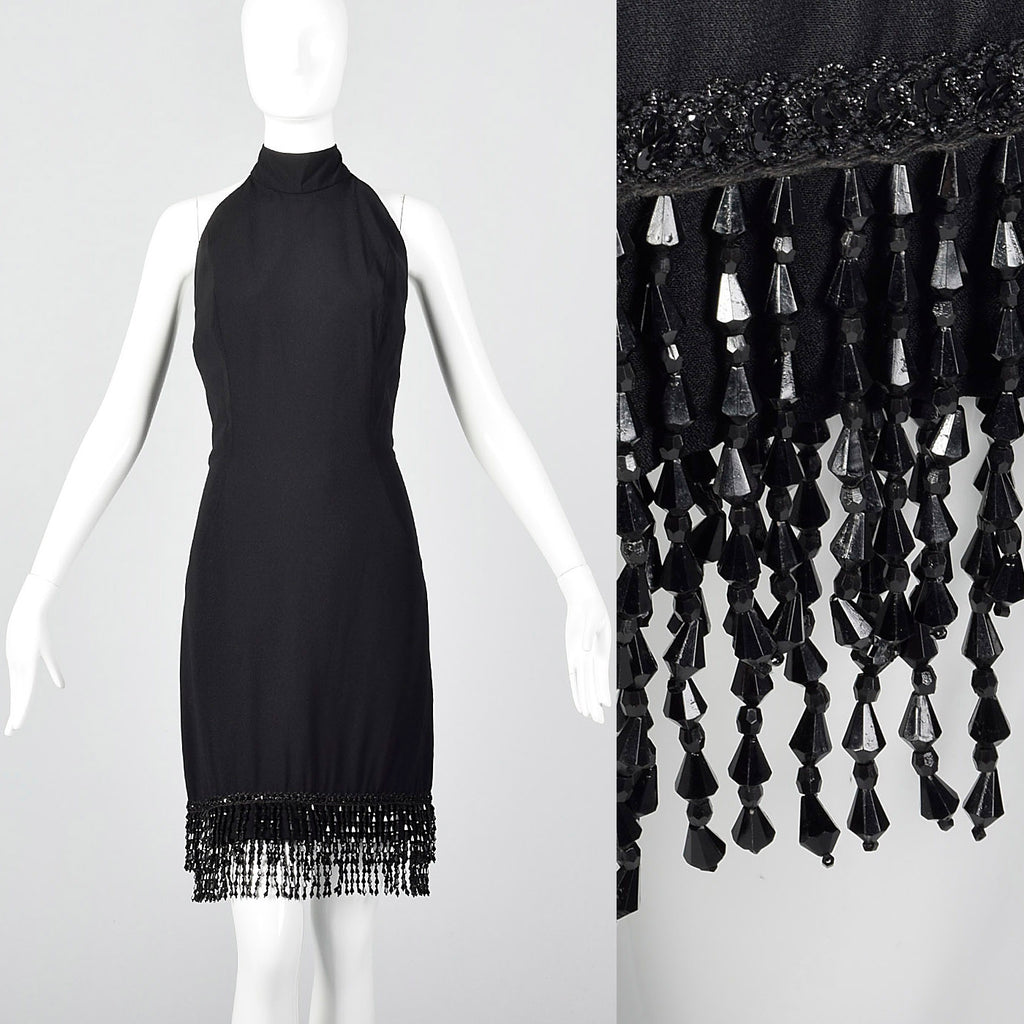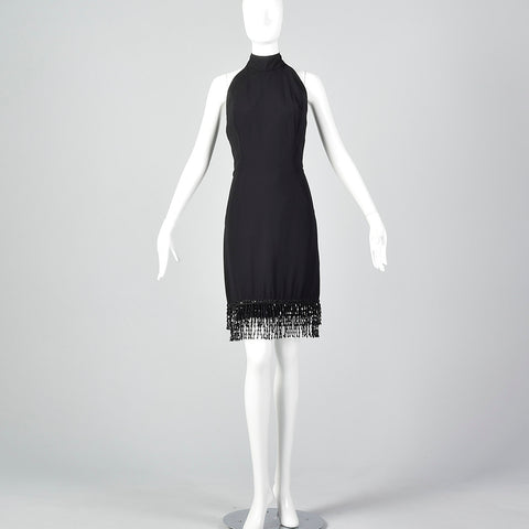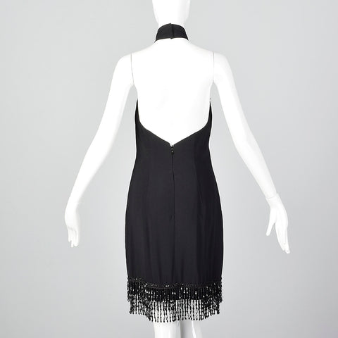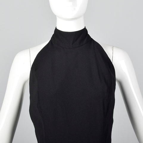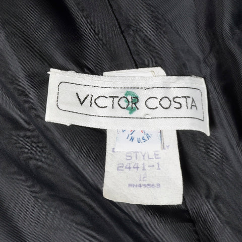 This listing is for one dress. Textile is a rayon blend. Victor Costa black halter dress. Fitted at the waist and hips with a slight taper through ...