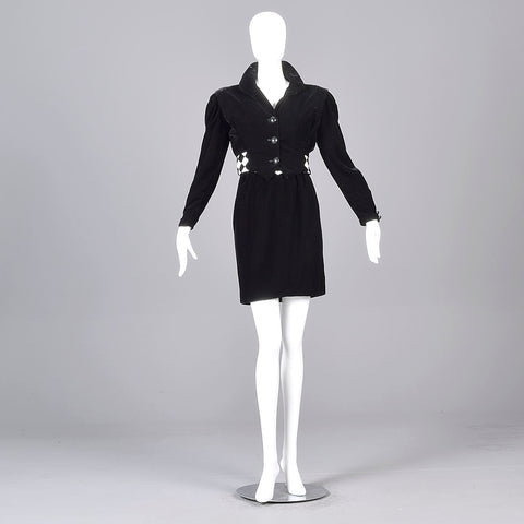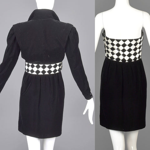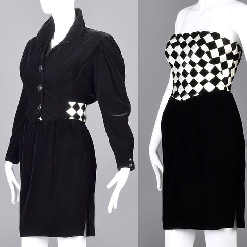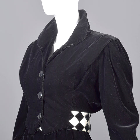 1980s Victor Costa Black Velvet Cocktail Dress with Bolero Jacket