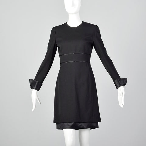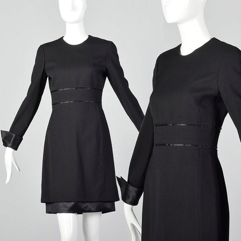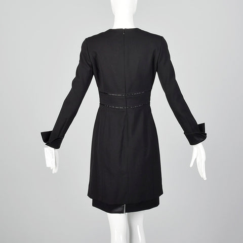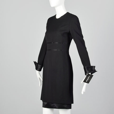 This listing is for one dress. Textile is wool. Deadstock Louis Feraud black dress. Long sleeves with french cuffs. Silk on the turn back of the cu...