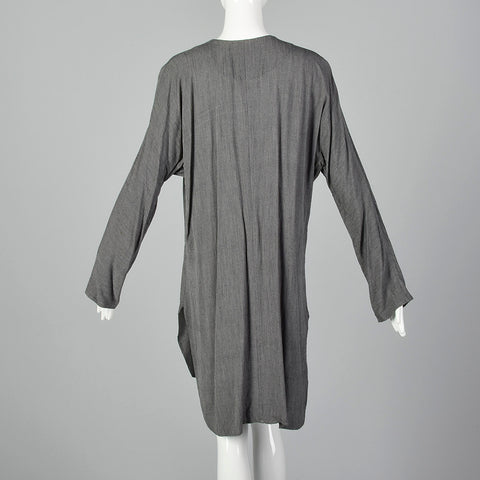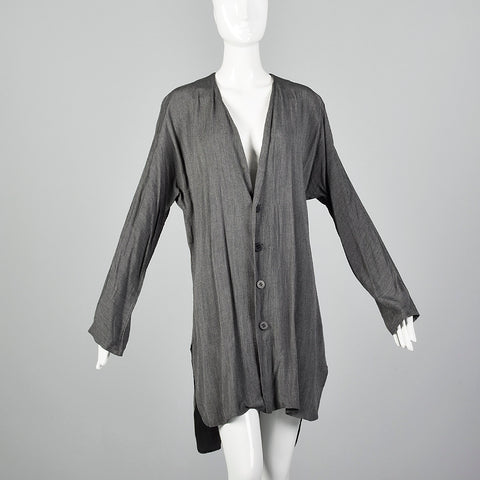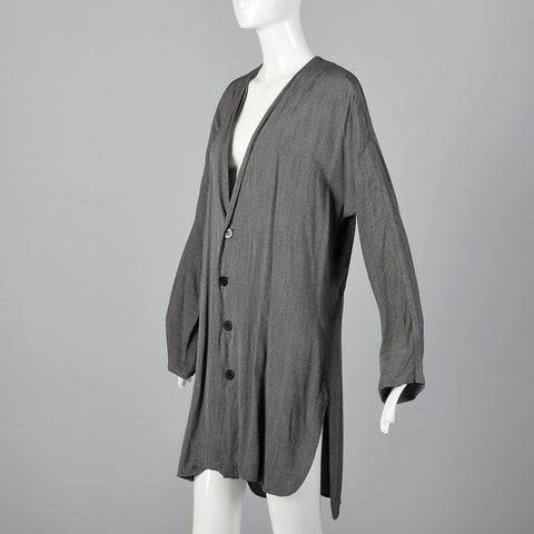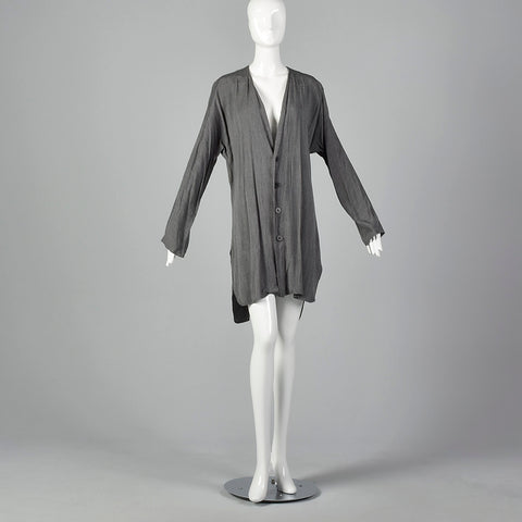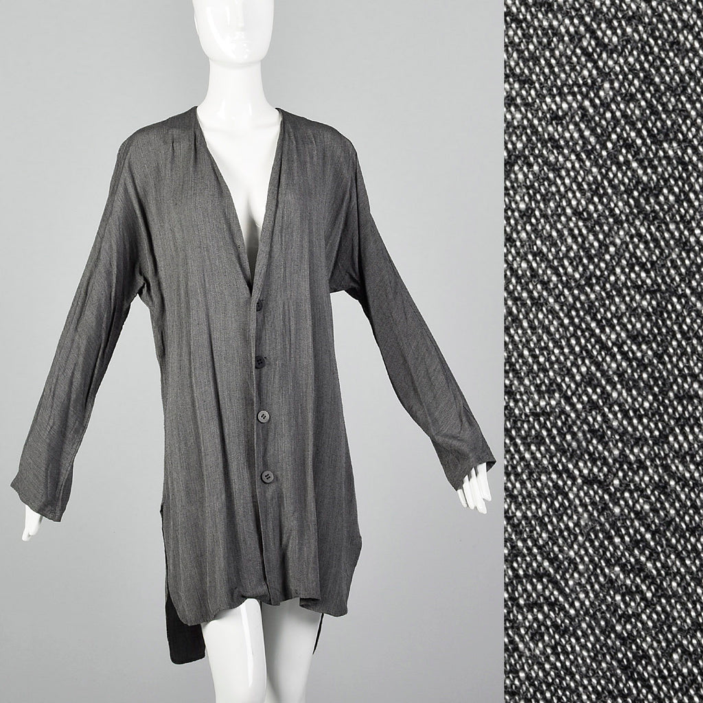 This listing is for one cardigan. Textile is rayon. Tunic style cardigan. Grey loose fit top. Long sleeve with four button front closure and side s...