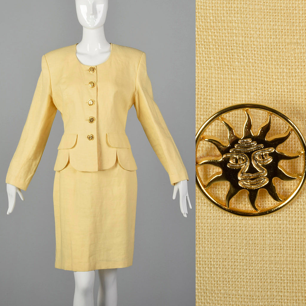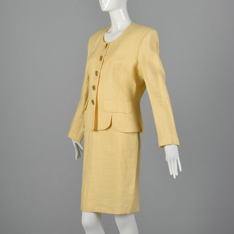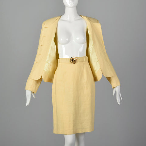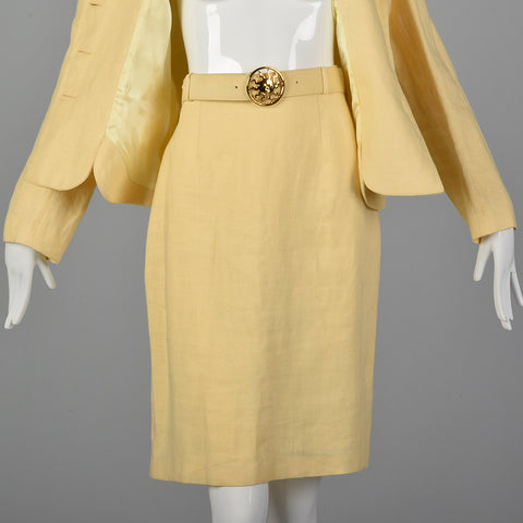 1990s Moschino Cheap & Chic Yellow Linen Skirt Suit