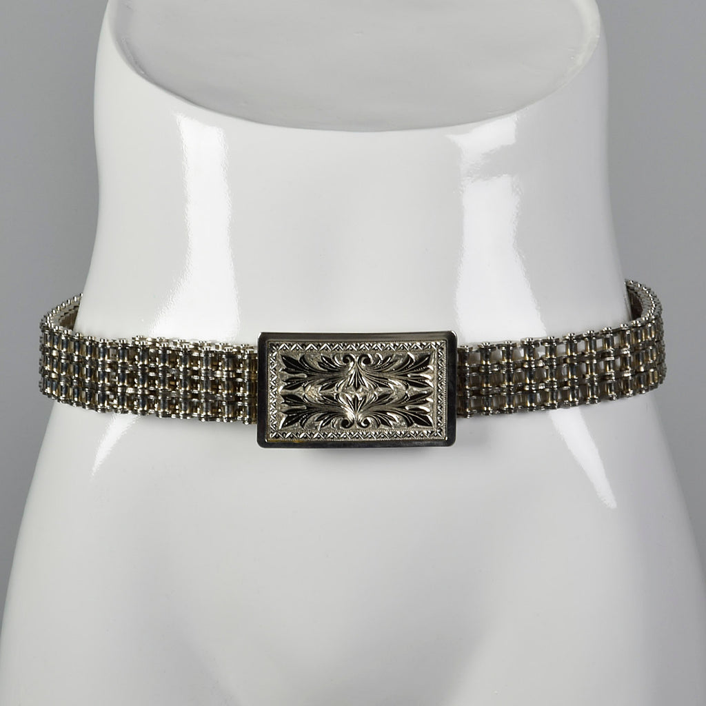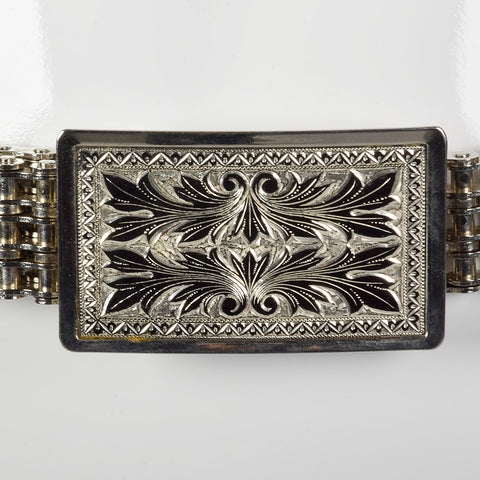 This listing is for one belt. Motorcycle chain belt. Heavy belt that is fully adjustable. Large metal buckle. Metal has a great patina. Some very s...
