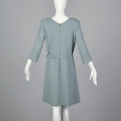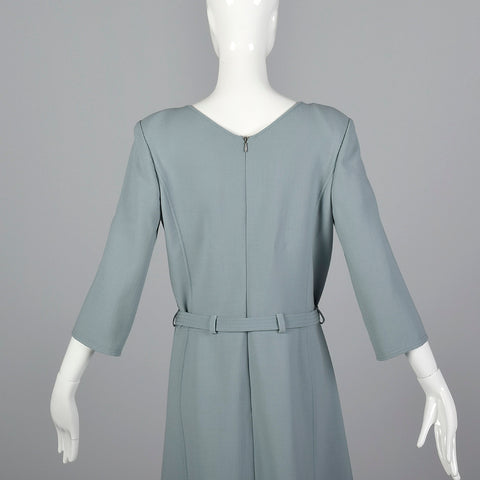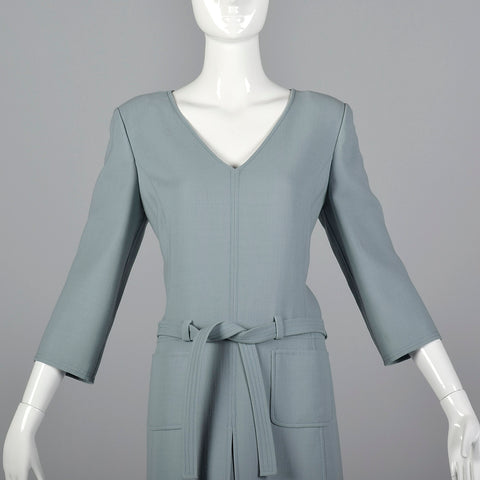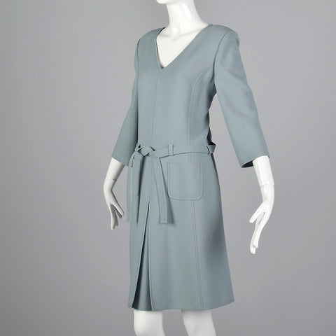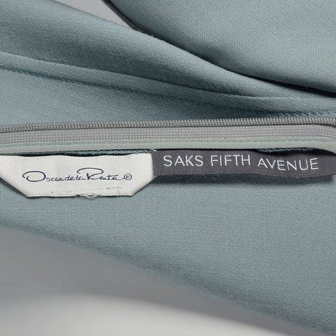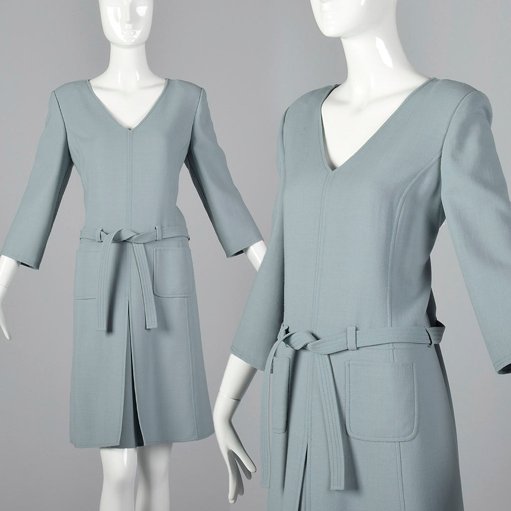 This Oscar de la Renta dress will never go out of style and is a great dusty blue color. The textile is unmarked, light blue, and is medium weight....