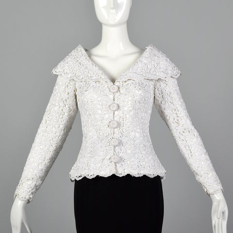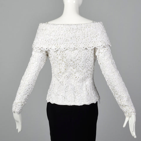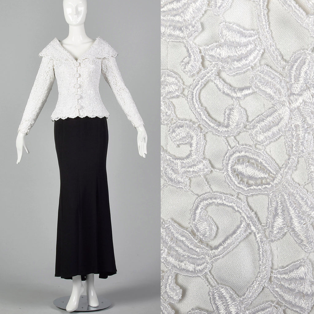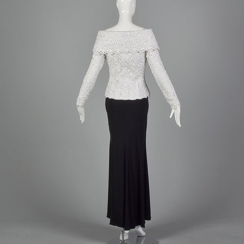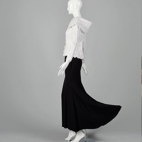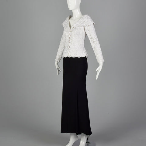 1990s Saks Fifth Ave White Lace Top with Black Mermaid Skirt