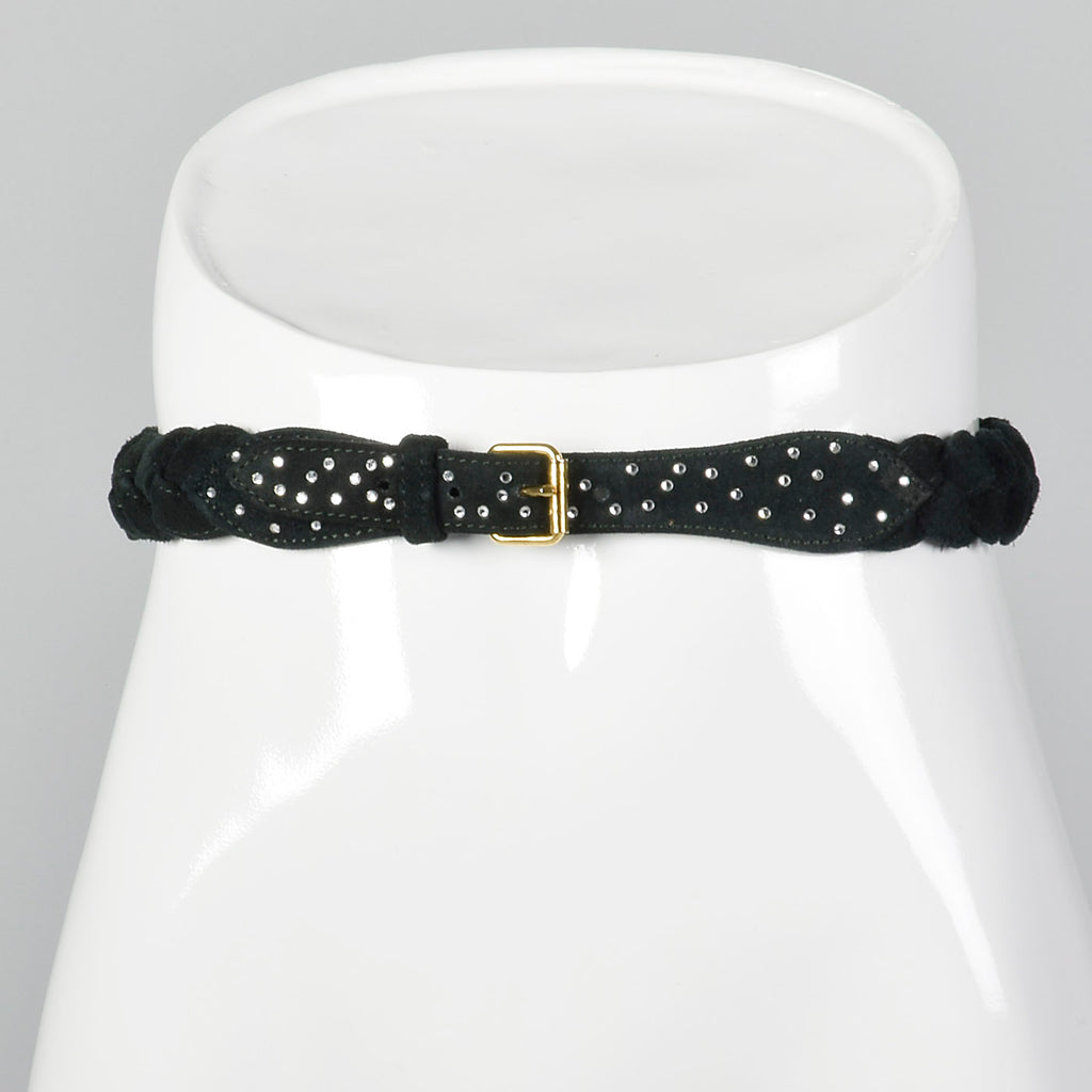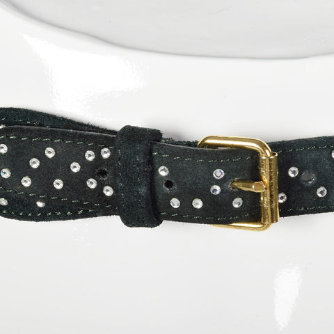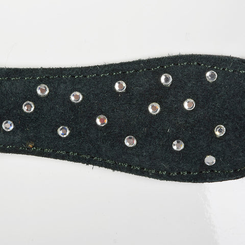 This listing is for one belt. Textile is unmarked, leather. Sonia Rykiel suede leather braided belt. Green belt with small rhinestones. Four holes ...