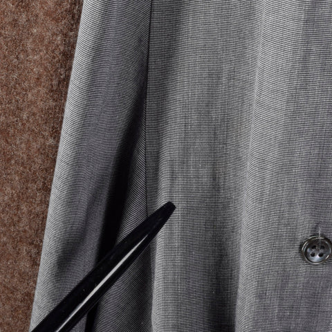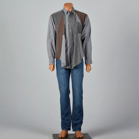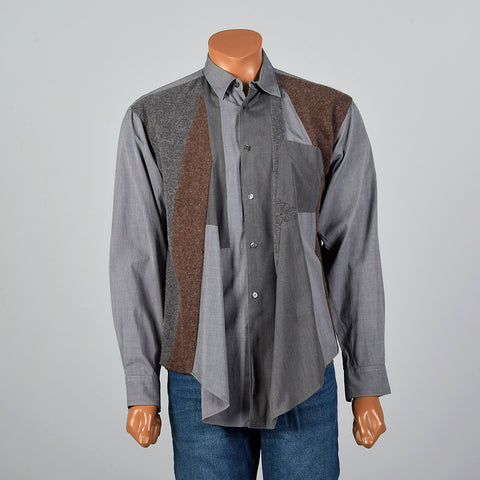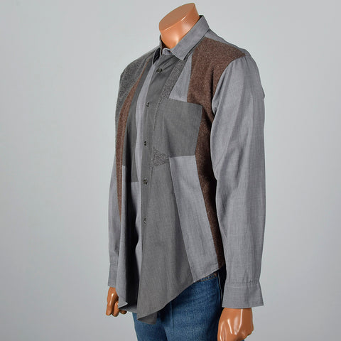 This listing is for one shirt. Textile is cotton. Patchwork swing shirt. Avant garde grey cotton shirt with knit wool blend panels. Button front, l...