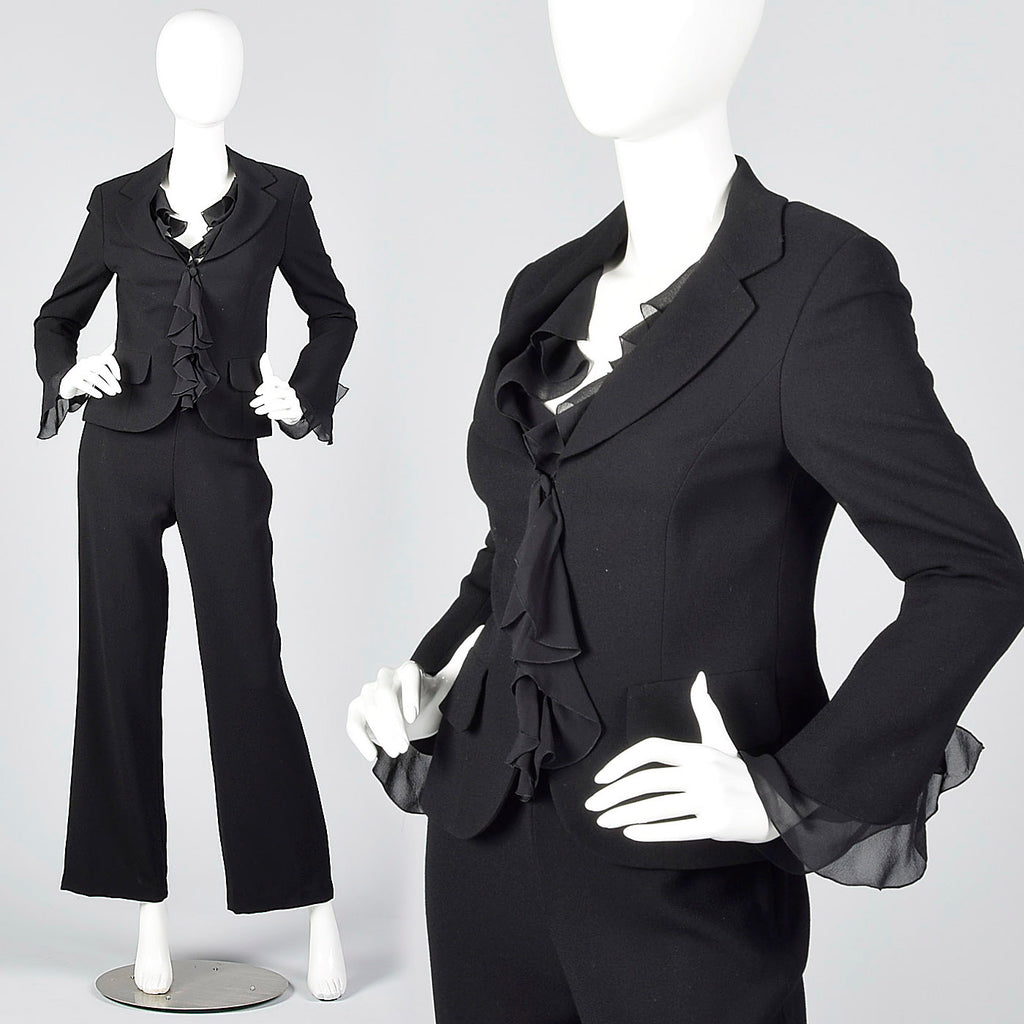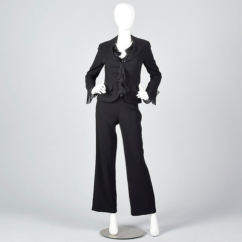 2000s Escada Couture Black Wool Crepe Pant Suit