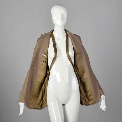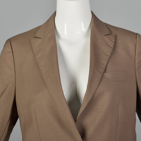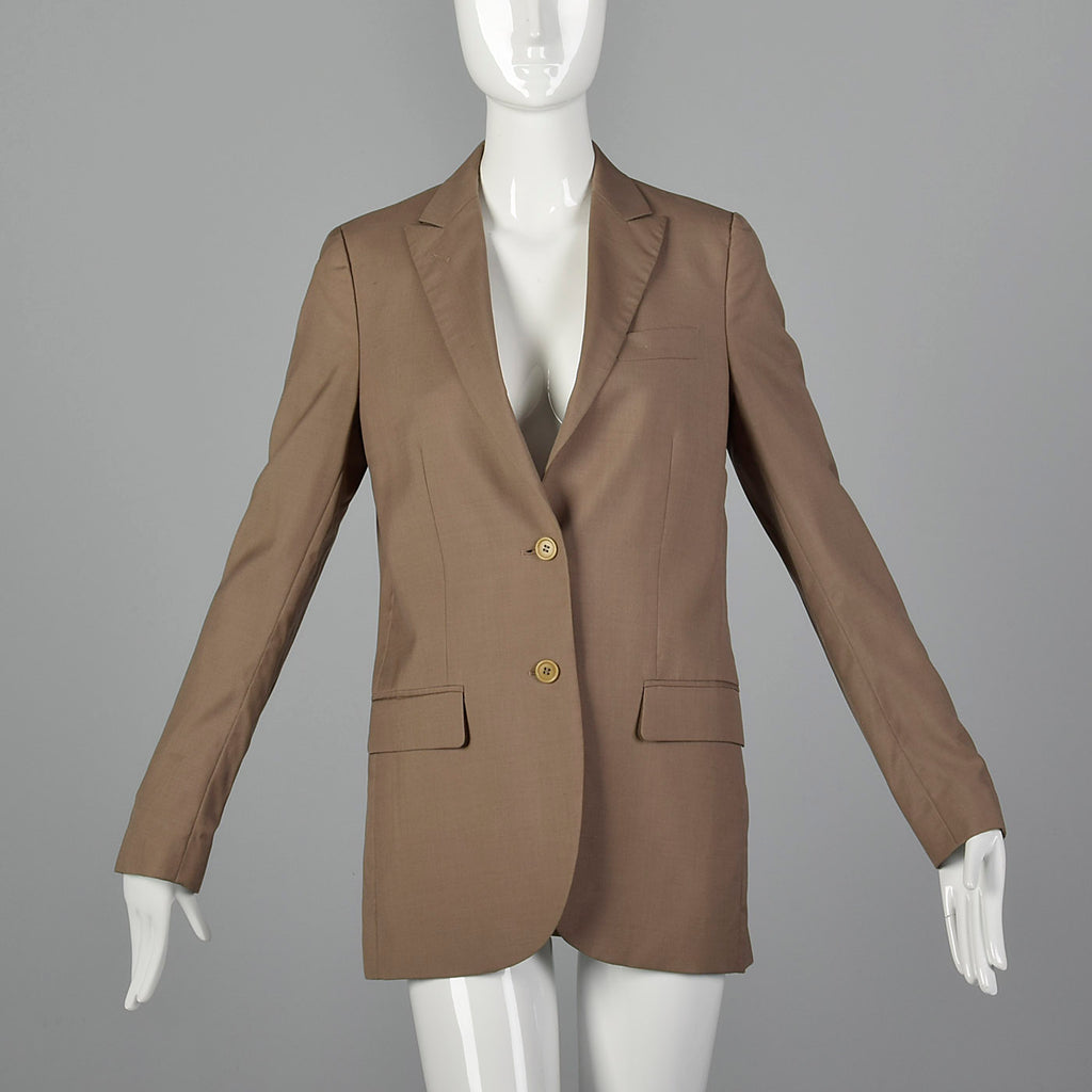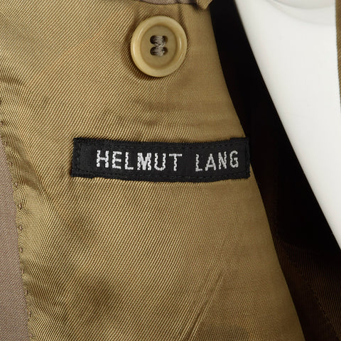 This listing is for one blazer. Textile is unmarked. Helmut Lang blazer. Tan, two outer pockets with flaps, and two inner welt pockets. Single back...
