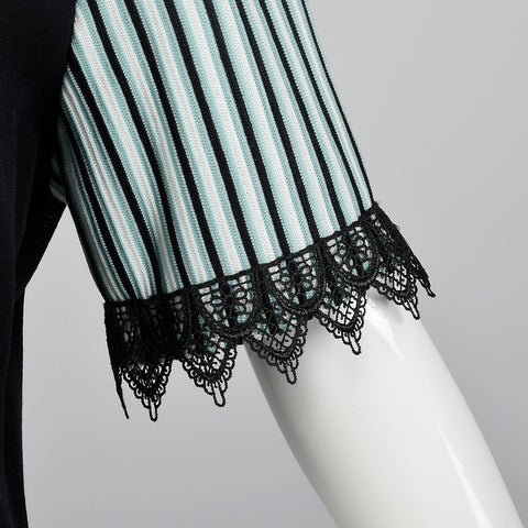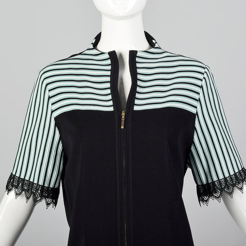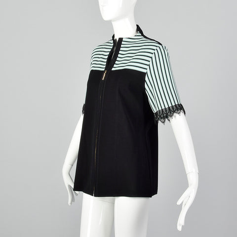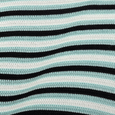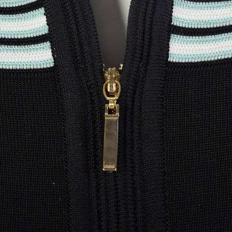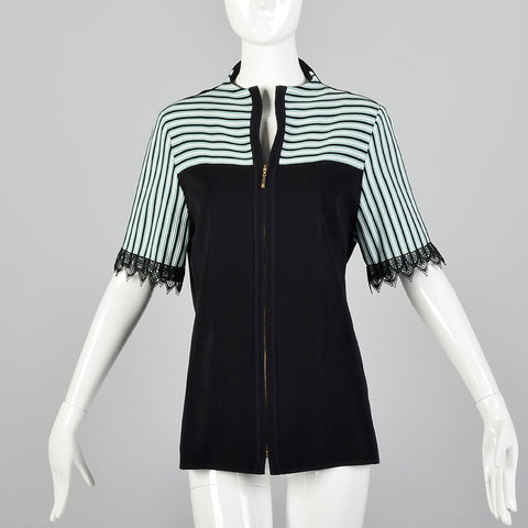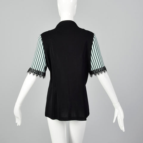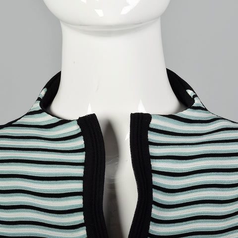 2000s Misook Black and Blue Striped Knit Shirt